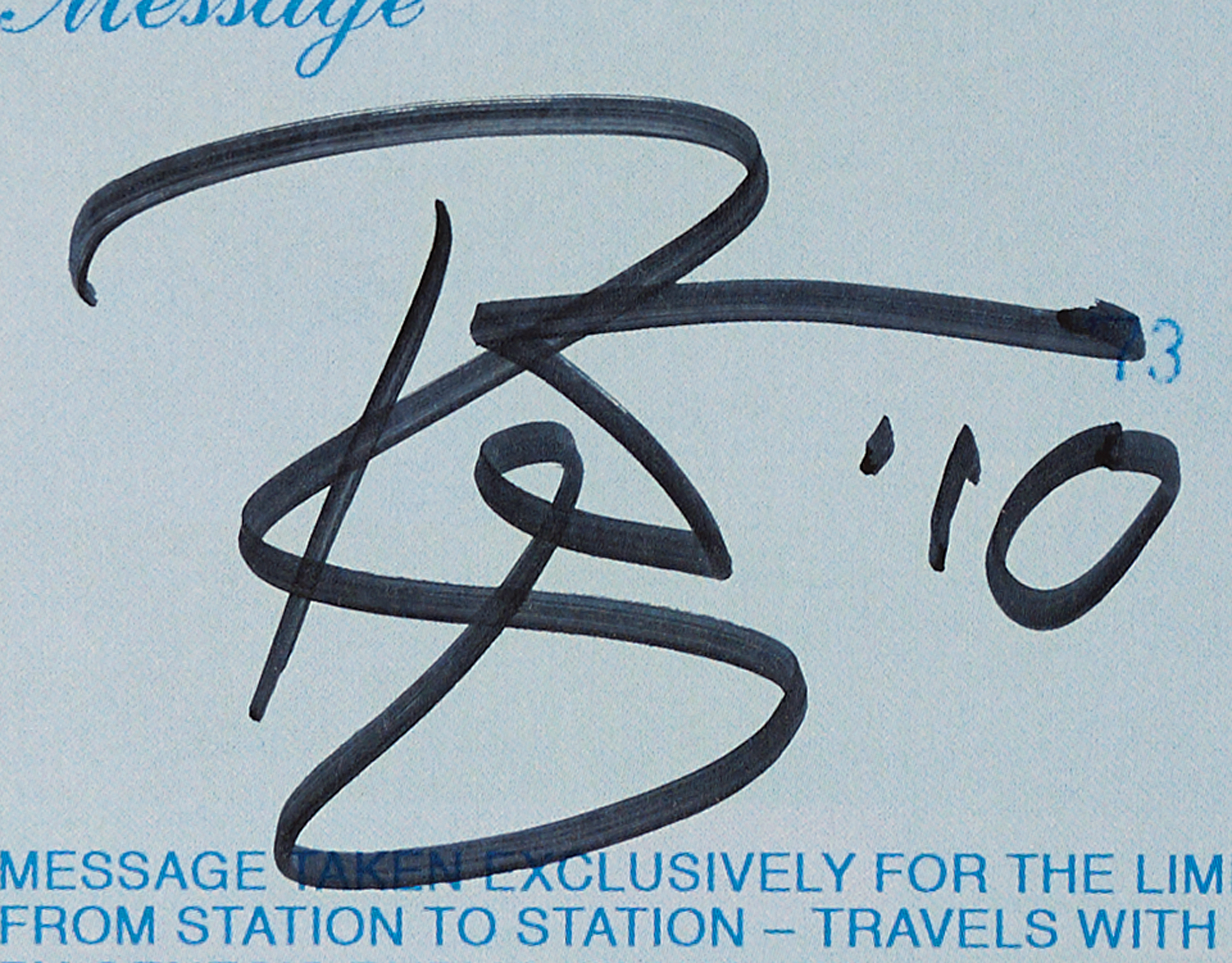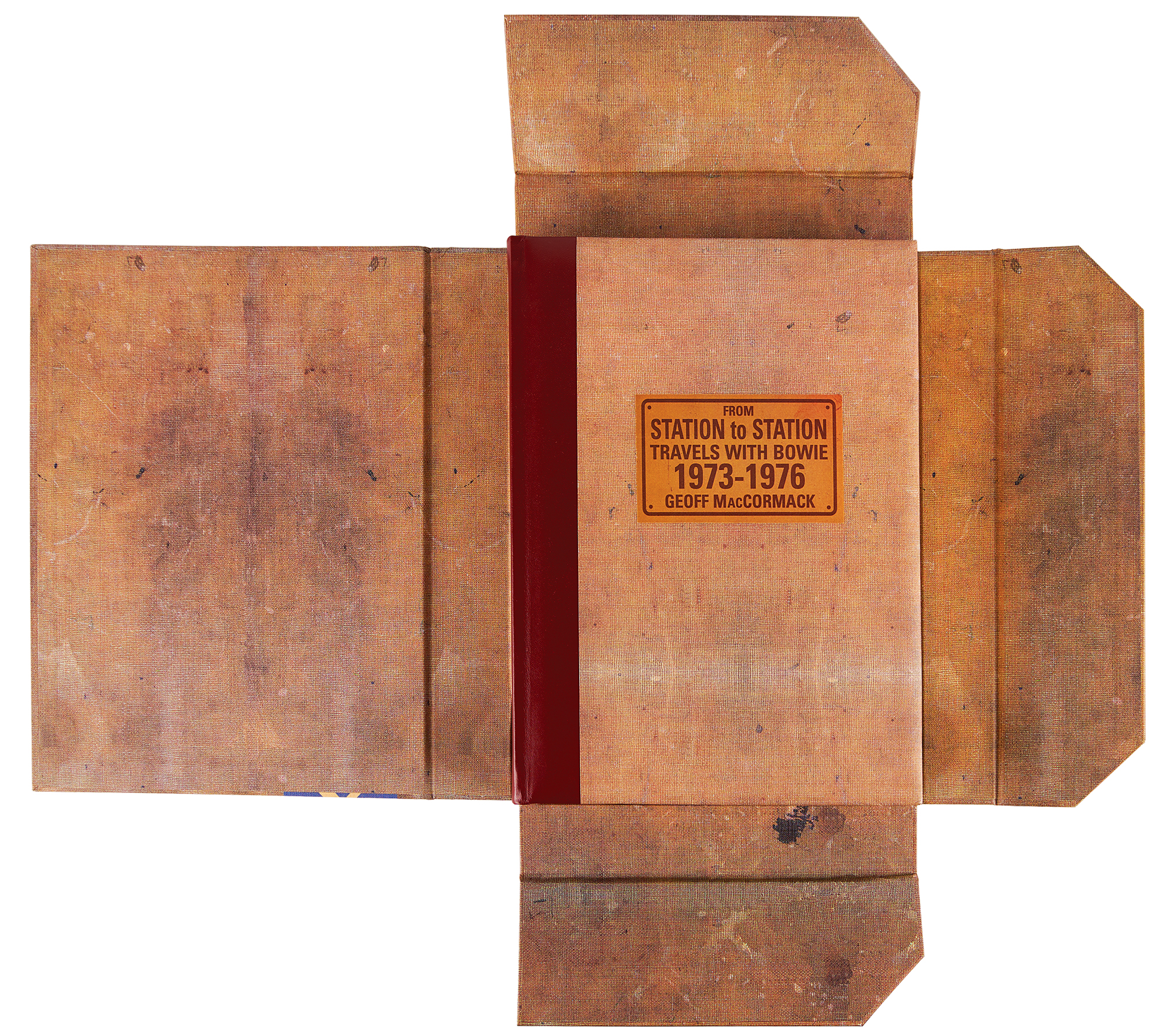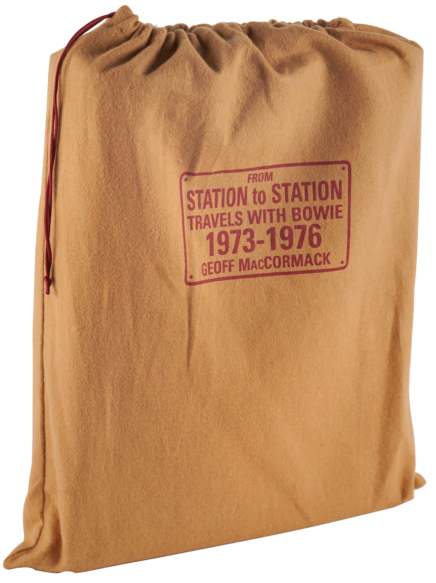 Signed book: From Station to Station: Travels with Bowie, 1973–1976, by Geoff MacCormack. First edition, limited issue, numbered 1838/2000. England: Genesis Publications, 2007. Hardcover with clamshell case, 10 x 13, 200 pages. Signed in black felt tip by David Bowie on a special 'While You Were Out' plate affixed to the front pastedown, and signed on the colophon in black felt tip by Geoff MacCormack. Complete with its drawstring bag. In very fine condition.