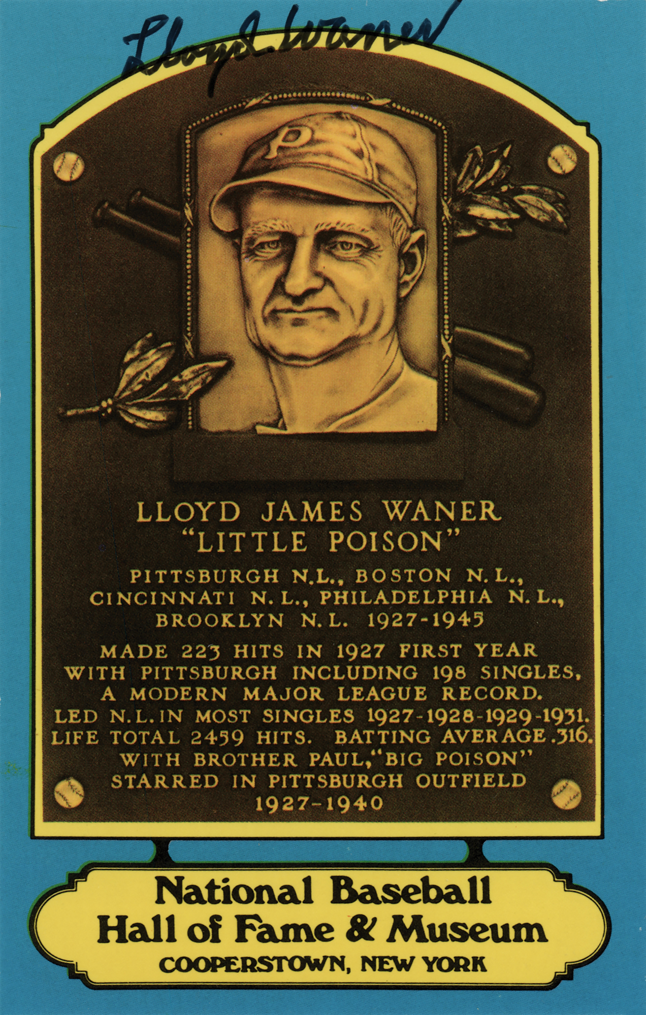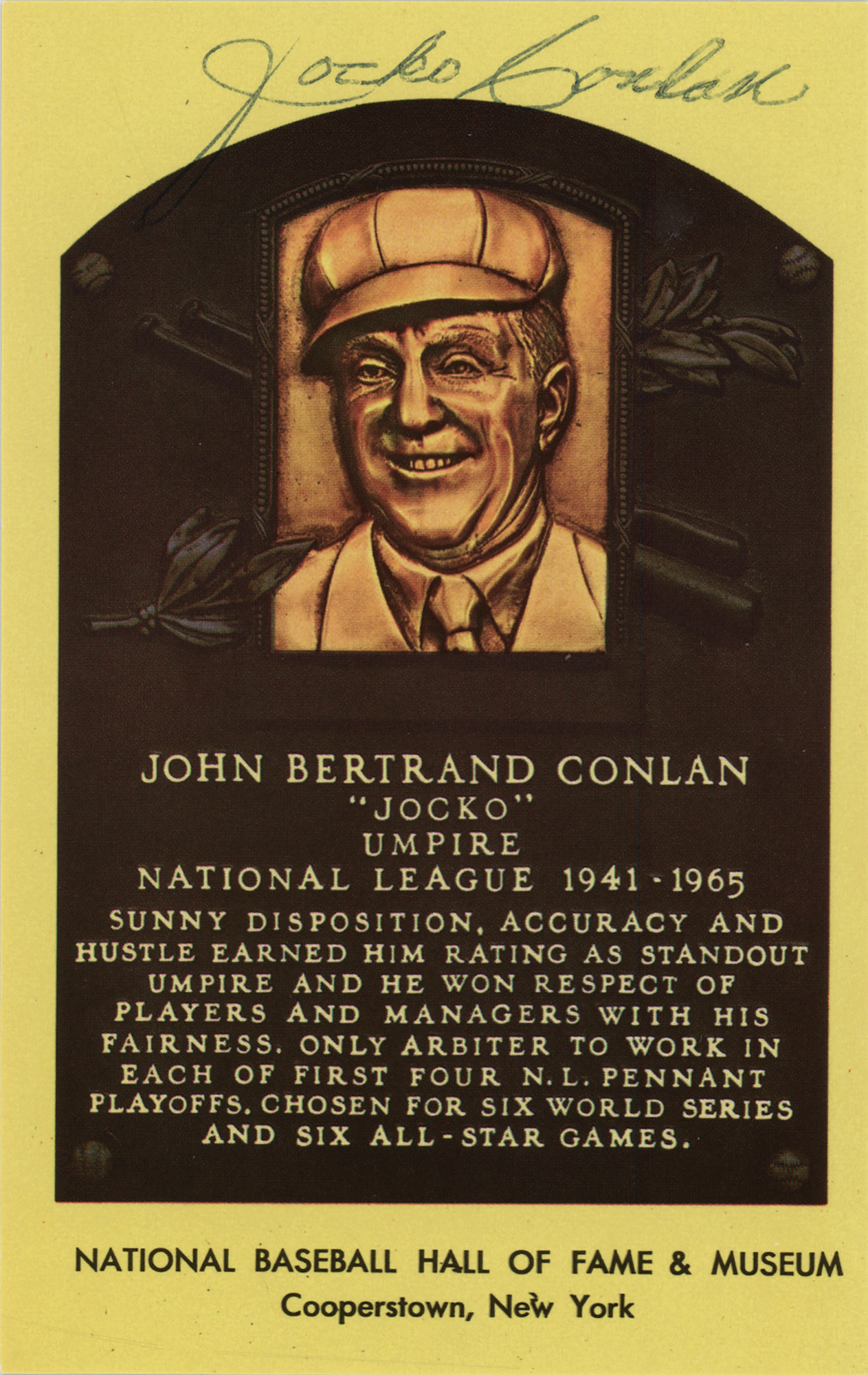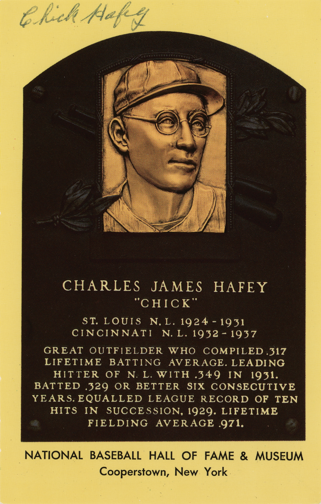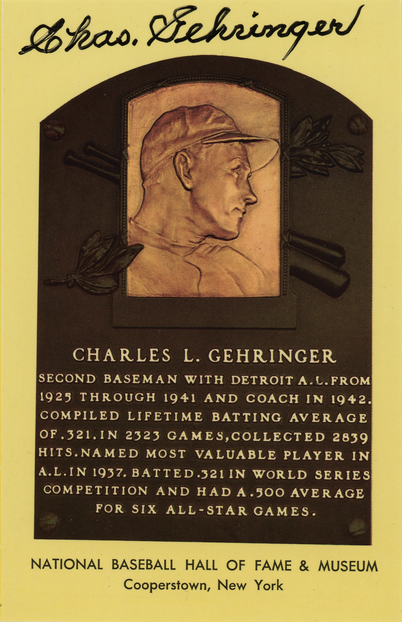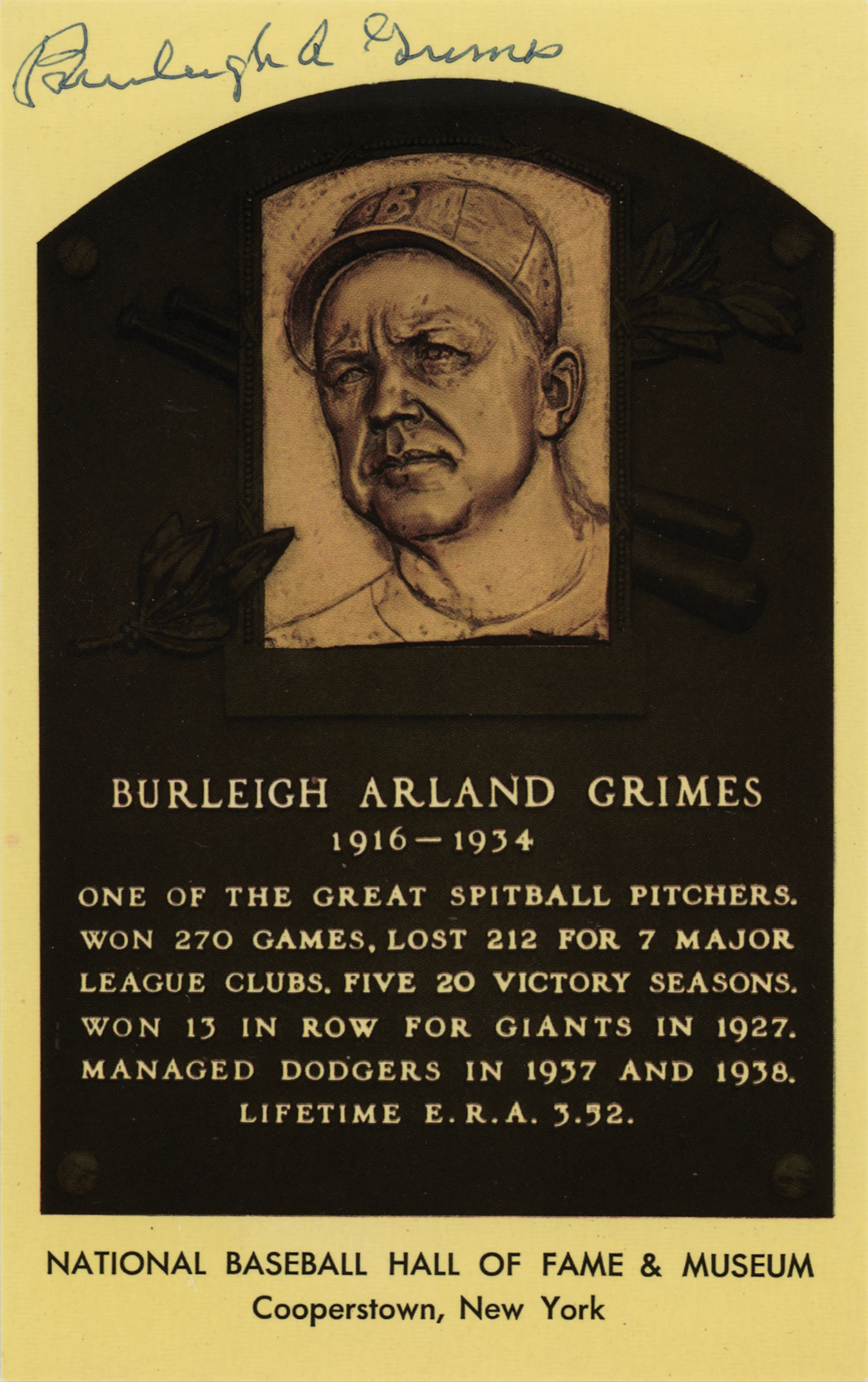Collection of 21 Hall of Fame plaque cards from the National Baseball Hall of Fame & Museum in Cooperstown, New York, each 3.5 x 5.5, individually signed in ballpoint and felt tip by the following baseball players: James ‘Cool Papa’ Bell, Lou Boudreau, Jocko Conlan, Stanley Coveleski, Bill Dickey (ins), Bob Feller, Charles Gehringer, Lefty Gomez, Hank Greenberg, Burleigh Grimes, Lefty Grove, Chick Hafey, Jesse Haines (ins), Gabby Hartnett, Carl Hubbell, Monte Irvin, Joe McCarthy, Stan Musial, Satchel Paige, Lloyd Waner, and Early Wynn. Boudreau and Greenberg have signed on the reverse. In overall fine condition.
