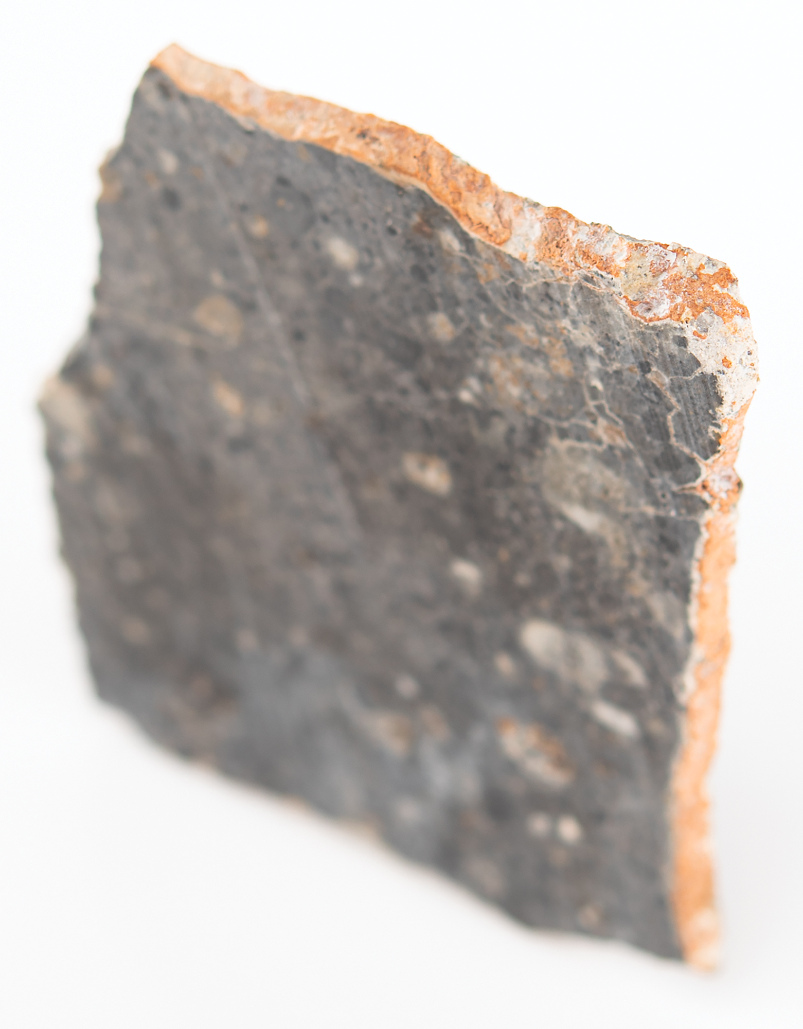 Being a slice, the pristine inner texture of the lunar rock can be seen.