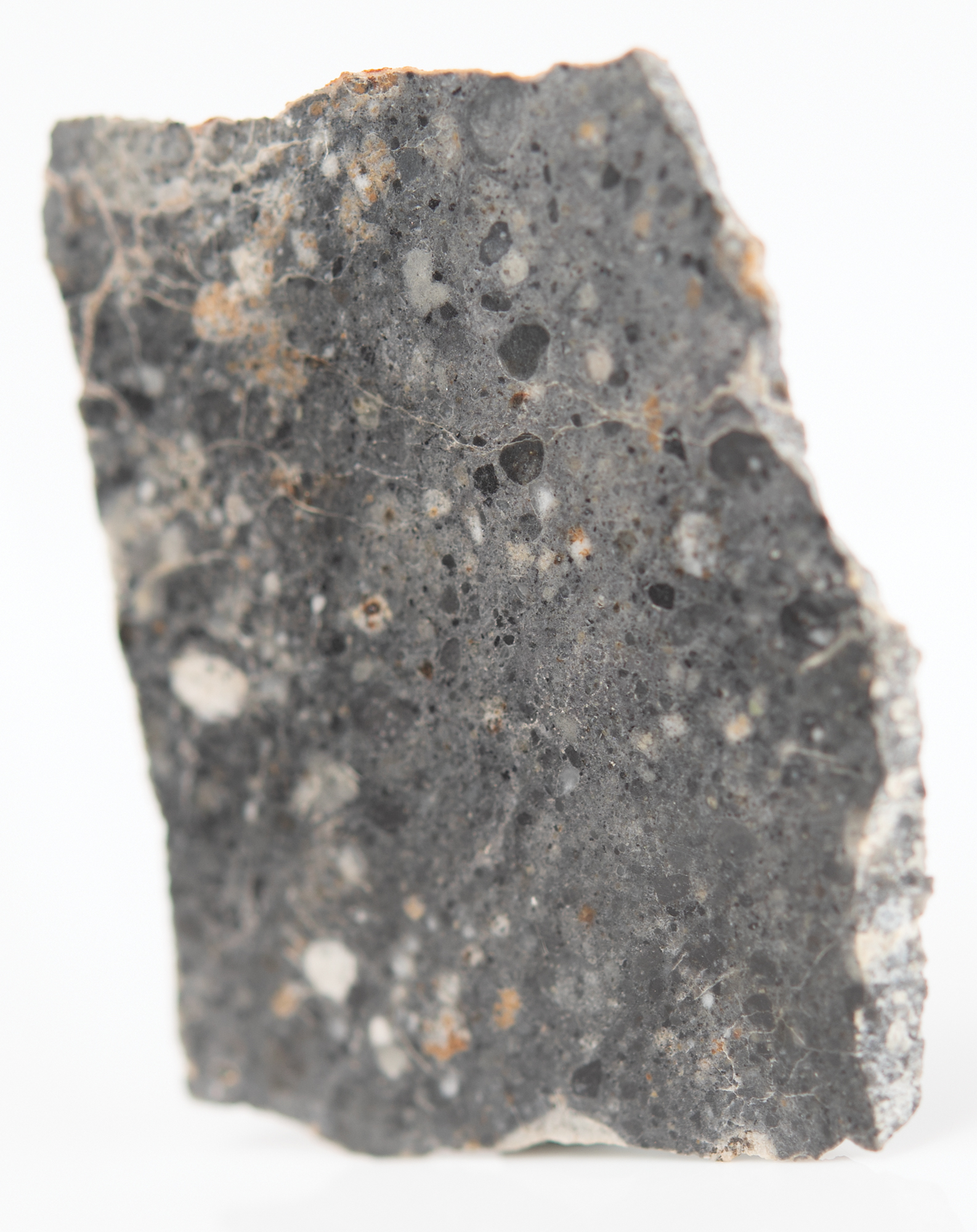 This lunar meteorite is a feldspathic breccia, meaning that it is composed of fragmented mineral and rock pieces, primarily of mineral feldspar, cemented together by a fine-grained matrix. It comes from a strewn field discovered in 2022 in the vast plains of the Sahara Desert, between Algeria and Morocco.