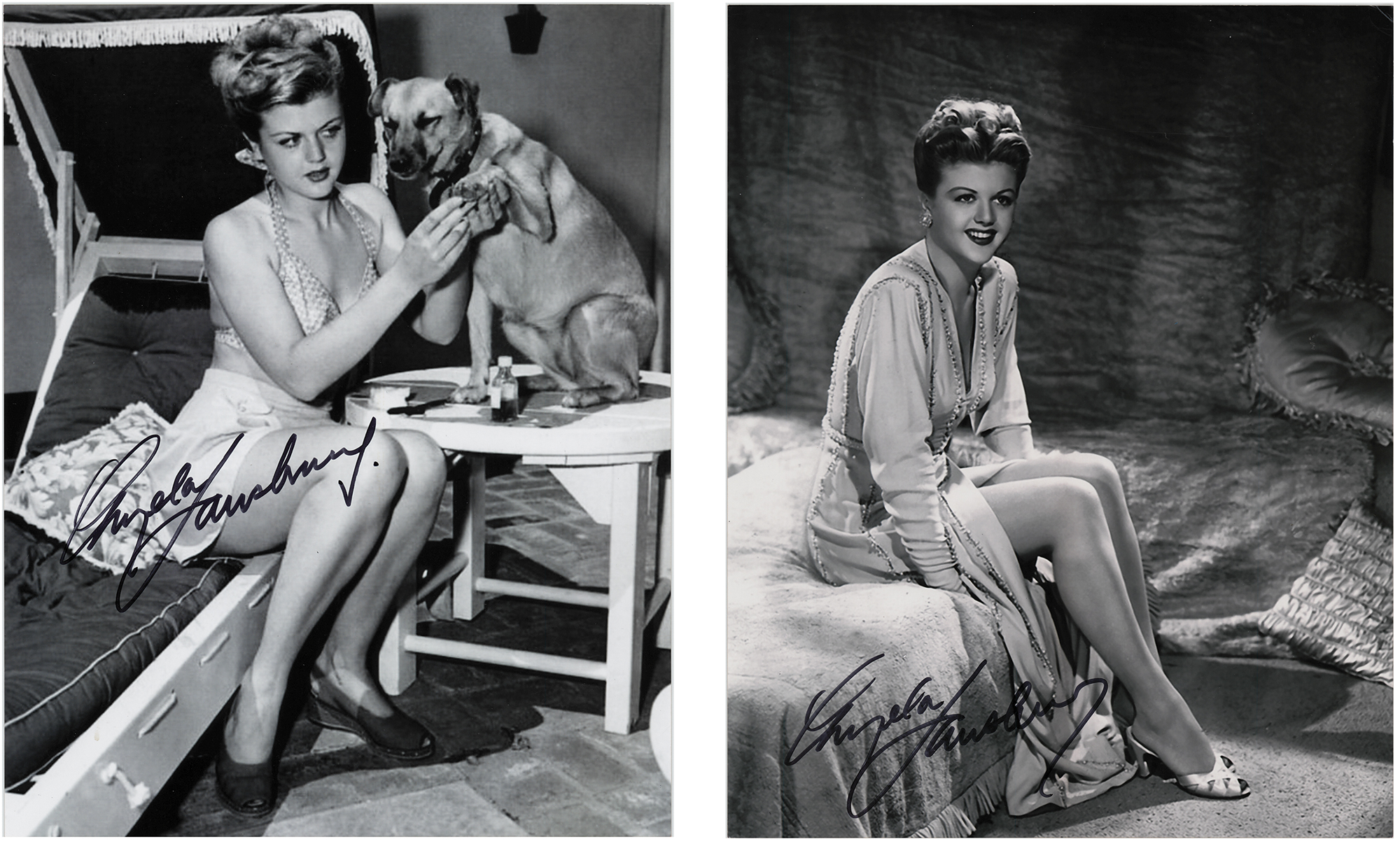 Two color satin-finish 8 x 10 photos of Angela Lansbury in full-length poses, each signed in black felt tip. In fine condition.