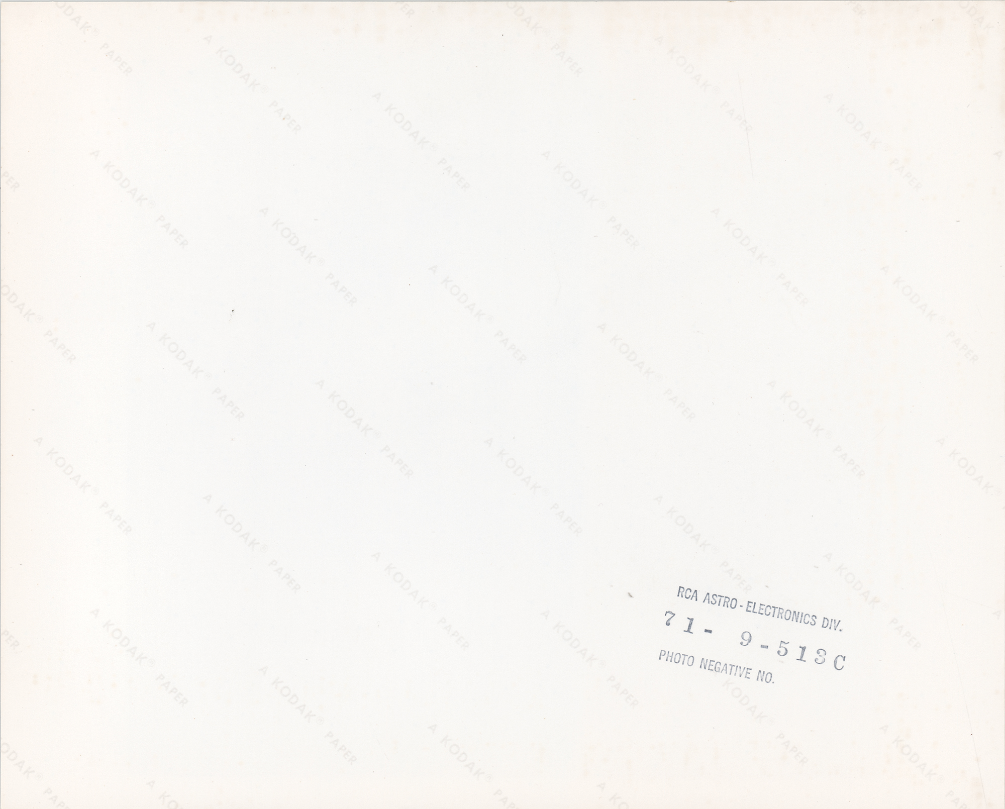 Original vintage color glossy 10 x 8 photograph showing a view of the lunar surface near the Aristarchus Plateau, taken during the Apollo 15 mission in 1971. Reverse bears “A Kodak Paper” watermarks and an ink stamp: "RCA Astro-Electronics Div., Photo Negative No. 71-9-513C." In fine condition.