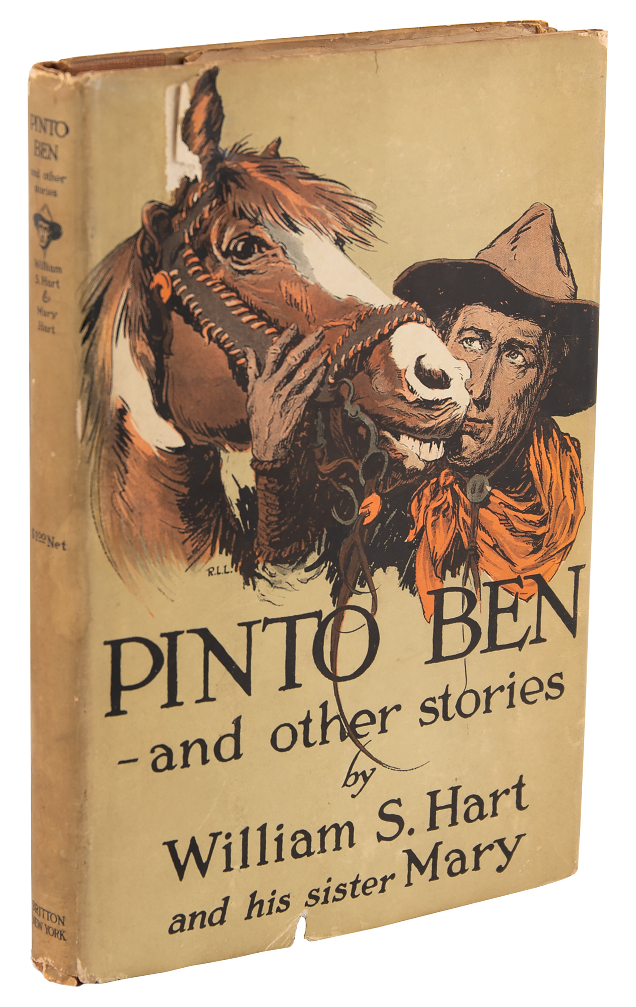 Signed book: Pinto Ben—and other stories. First edition. NY: Britton, 1919. Hardcover with dust jacket, 5 x 7.5, 95 pages. Signed and inscribed on the first free end page in fountain pen, "To Mita Kola, Clarence Ellsworth, From William S. Hart, 1944." In fine condition, with light wear to the dust jacket.