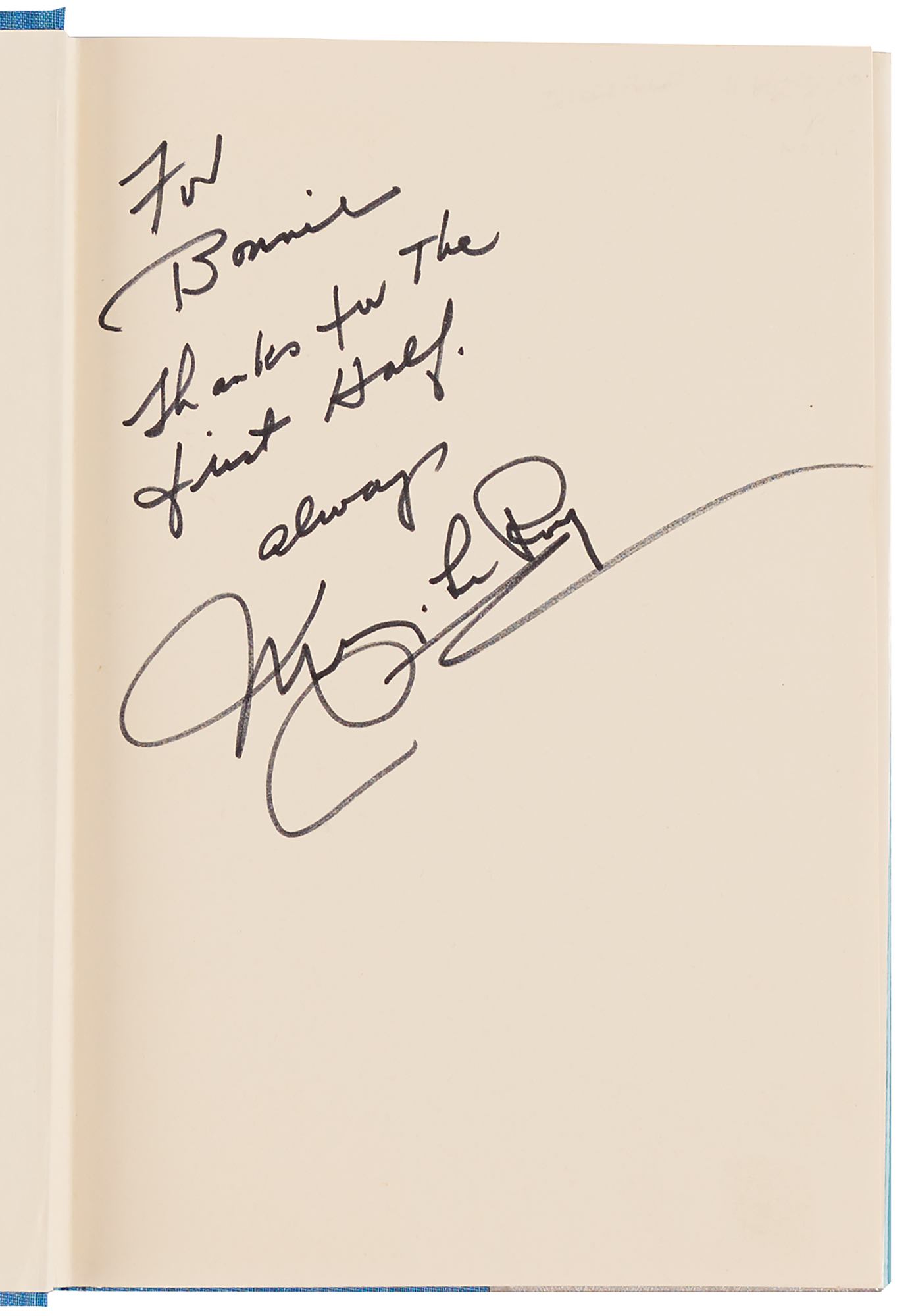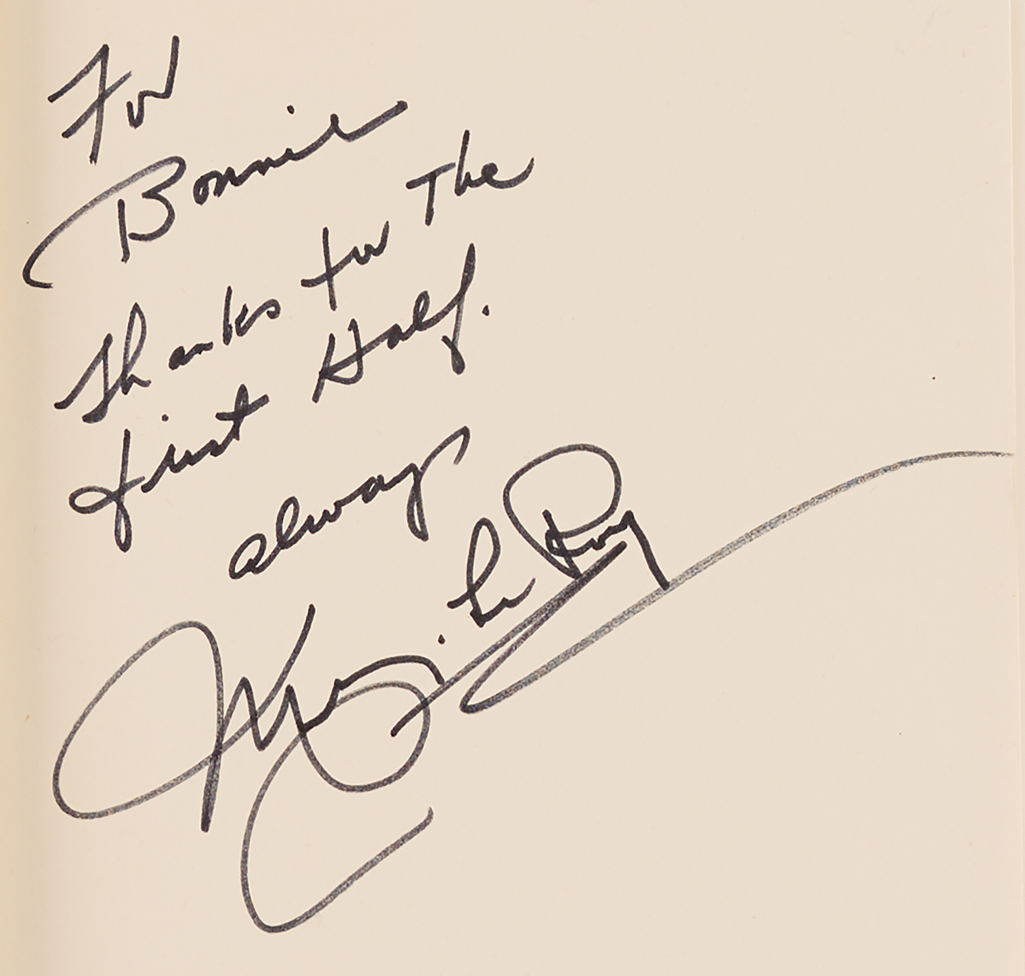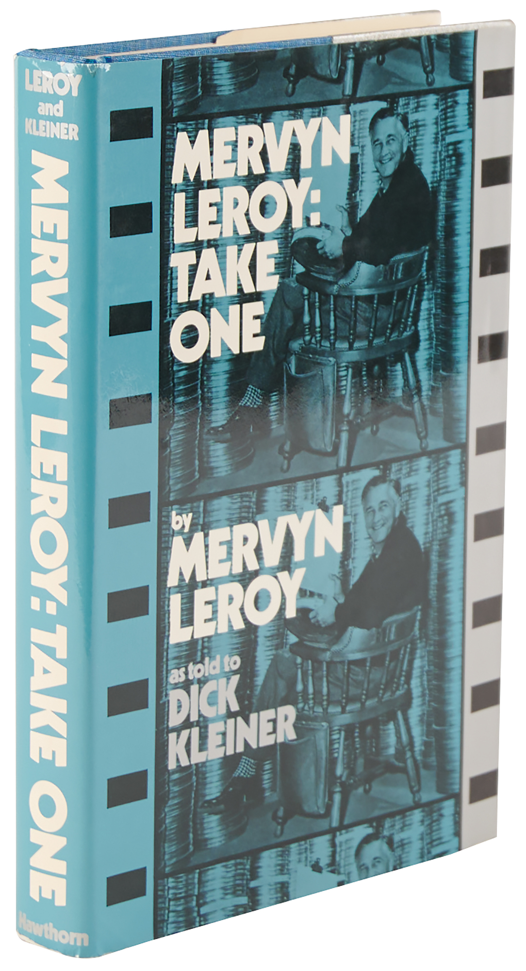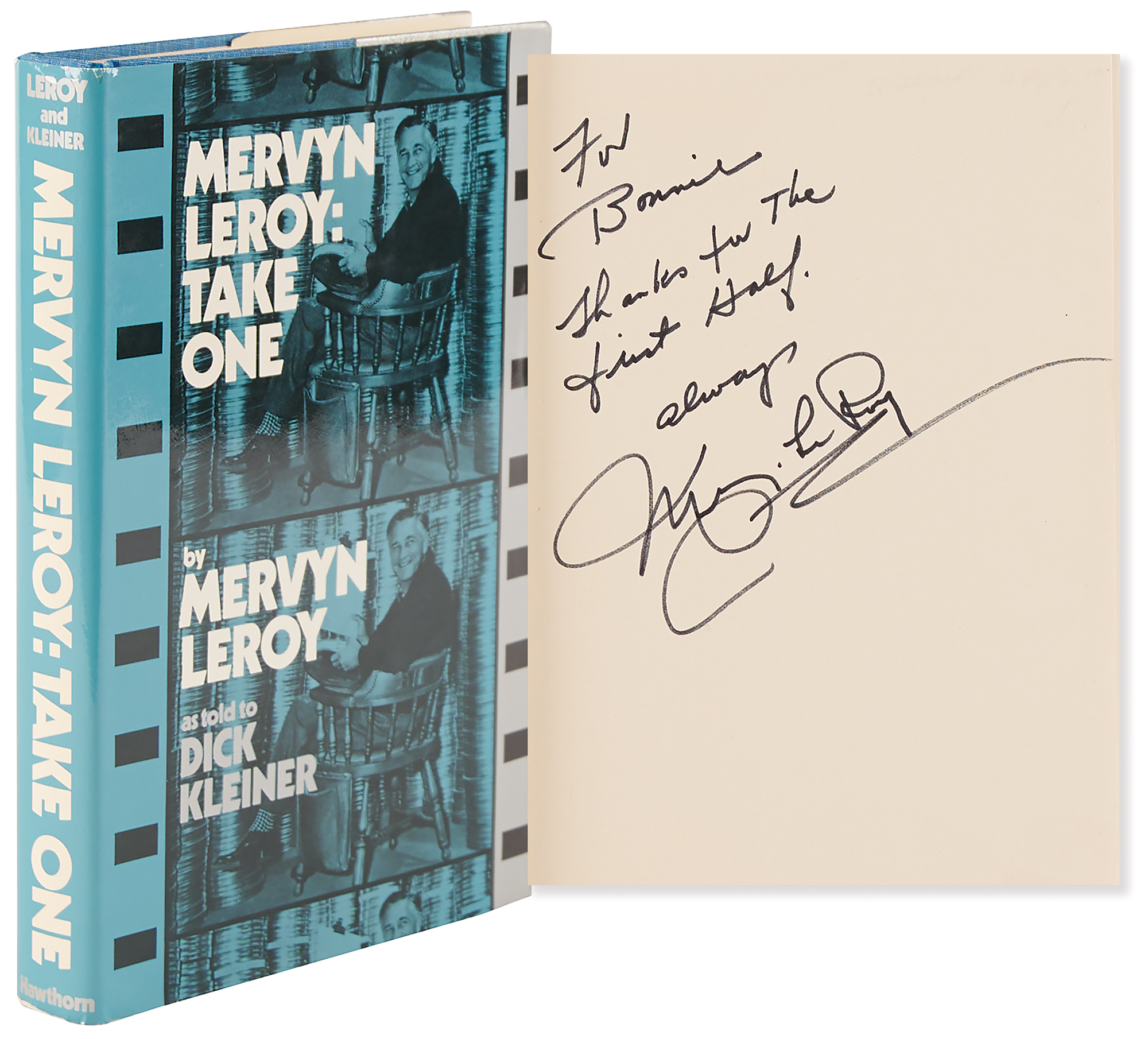 Signed book: Mervyn Leroy: Take One. First edition. NY: Hawthorn Books, 1974. Hardcover with dust jacket, 6.5 x 9.5, 244 pages. Signed and inscribed on the first free end page in black felt tip, "For Bonnie, Thanks for the first half. Always, Mervyn Leroy." In fine condition.