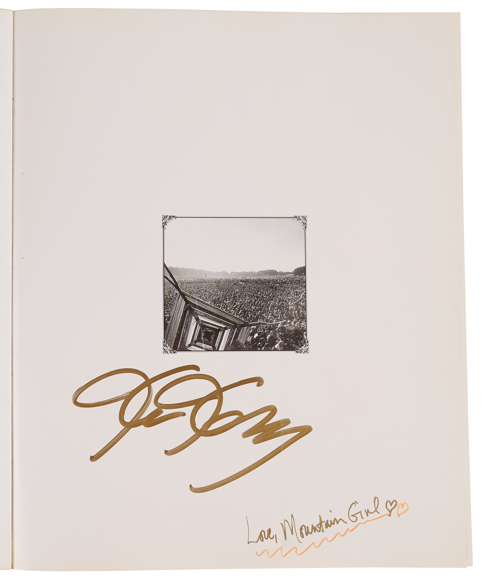 Signed book: I Want To Take You Higher. First edition. San Francisco, CA: Chronicle Books, 1997. Paperback, 10 x 12, 206 pages. Signed on the first free end page in gold ink, "Ken Kesey," and "Love Mountain Girl." In fine condition.