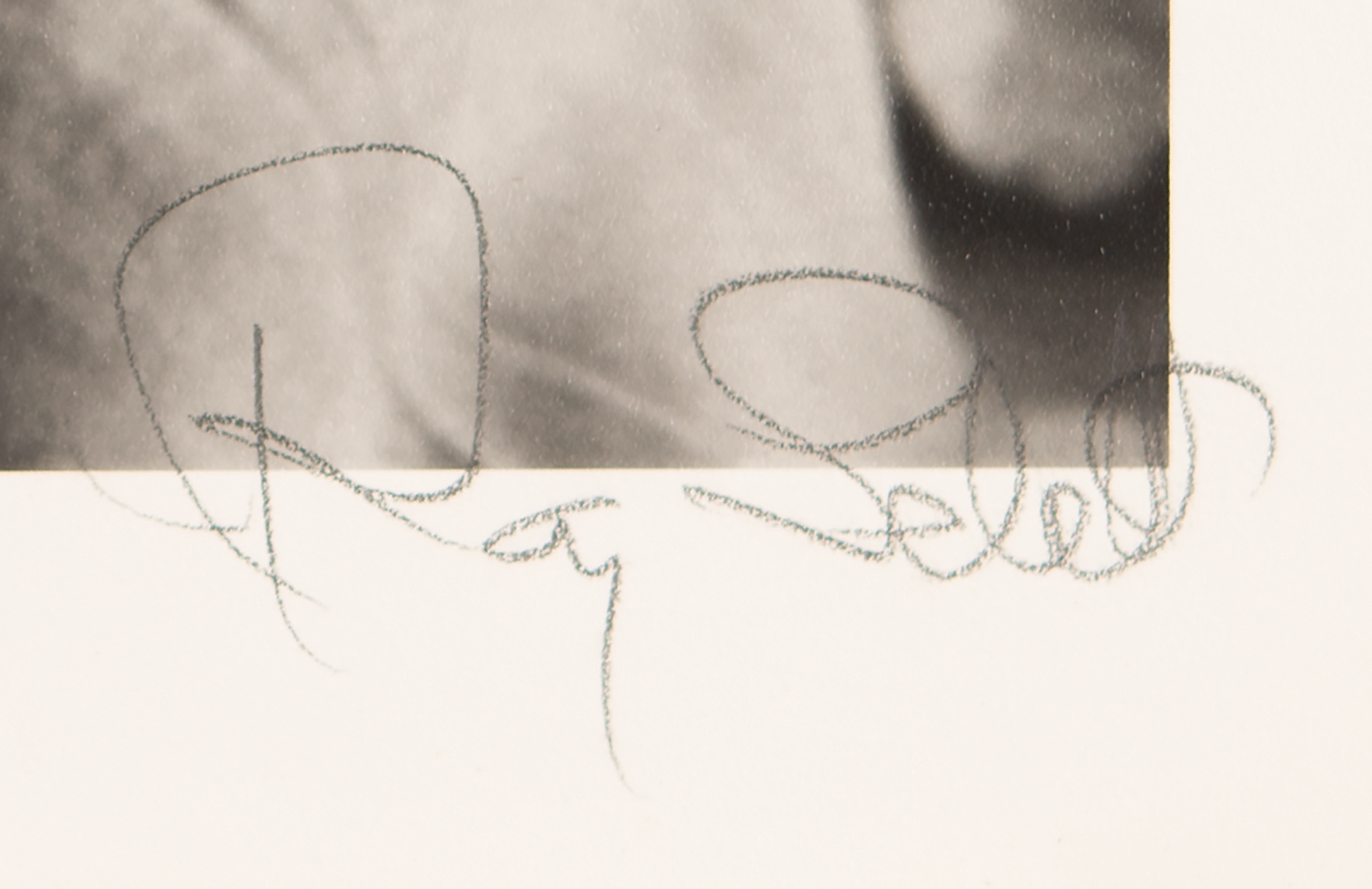 Original matte-finish 20 x 16 silver gelatin photograph of James Dean lounging with a camera in hand, signed in the lower border in pencil by photographer Roy Schatt. In very fine condition.