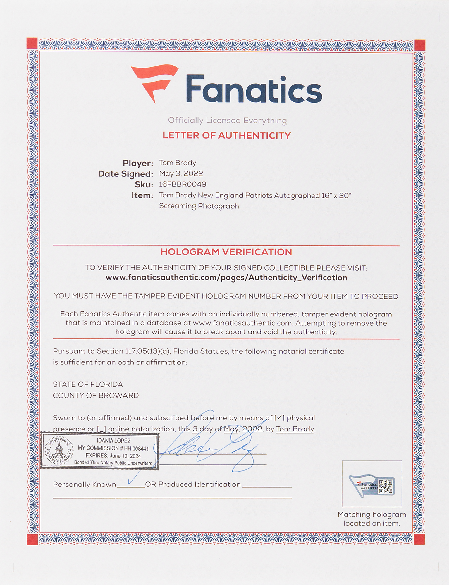 Buy a third-party letter of authenticity for $100.00