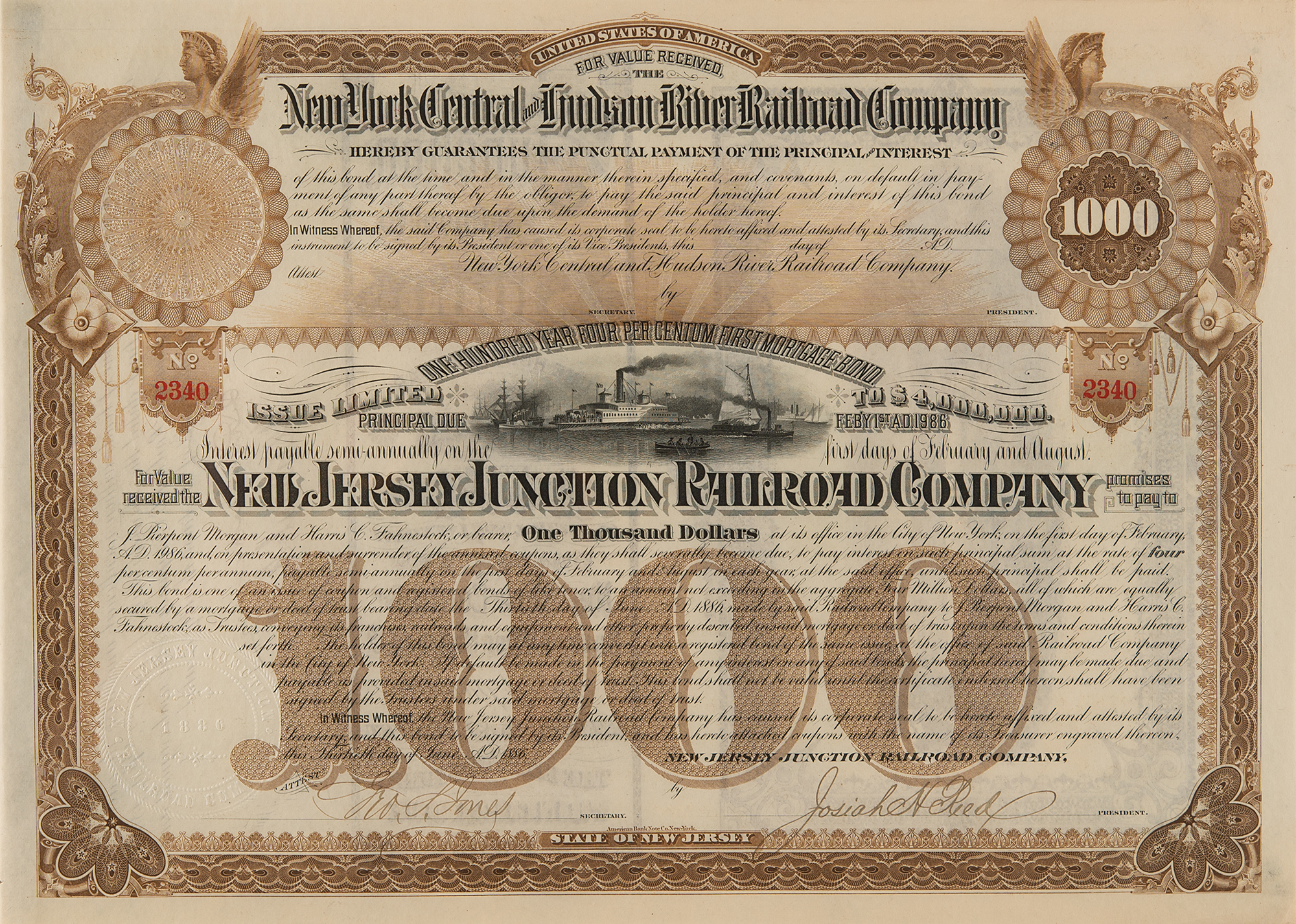 J. Pierpont Morgan Signed 'New Jersey Junction Railroad' Mortgage Bond
