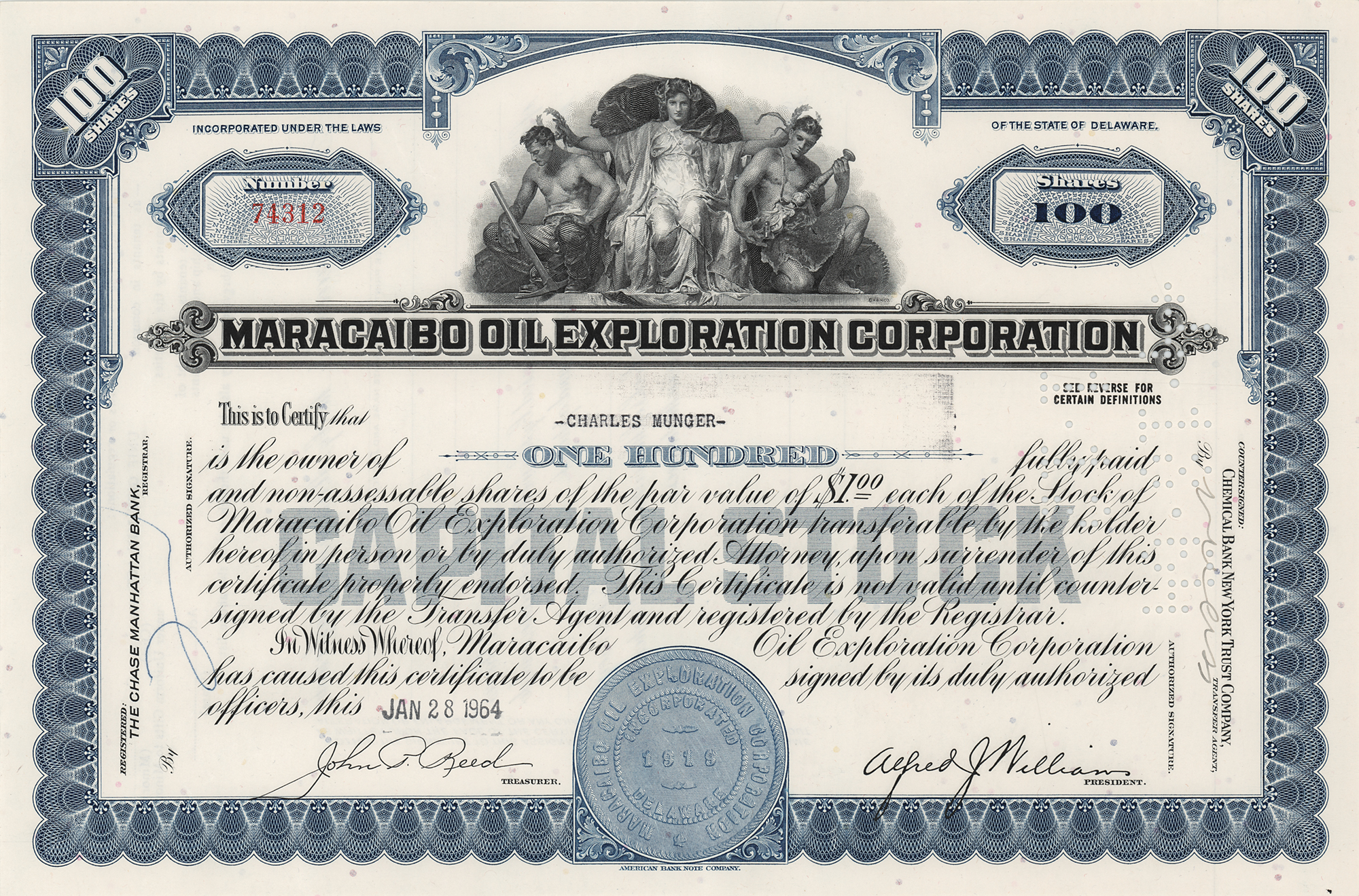 Charlie Munger: Maracaibo Oil Exploration Corporation Stock Certificate