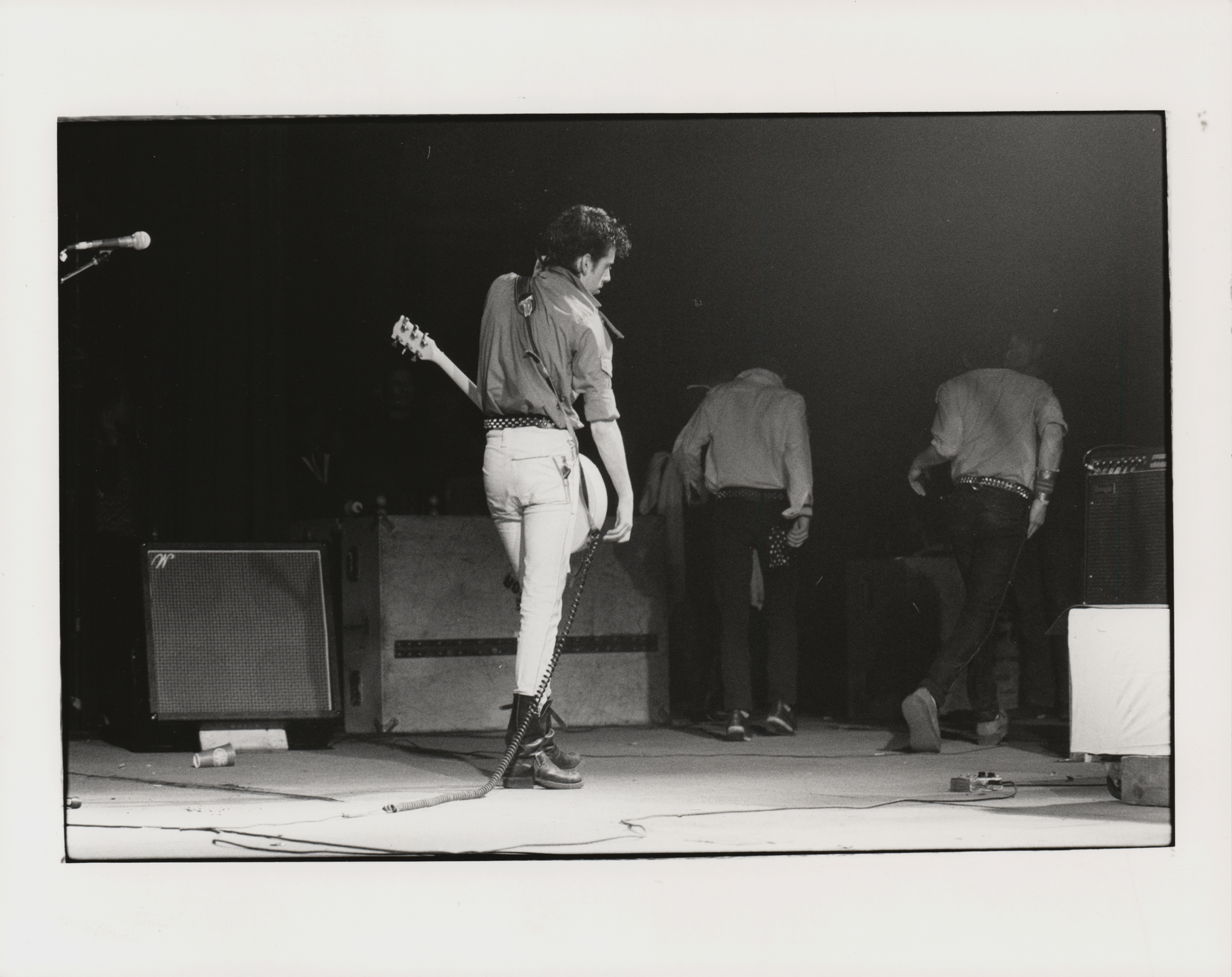Original semi-glossy 10 x 8 silver gelatin photograph of The Clash's Mick Jones with his guitar, surrounded by amplifiers, taken by photographer David Gahr and printed later from the original negative. Stamped on the reverse with the photographer's copyright. In fine condition.