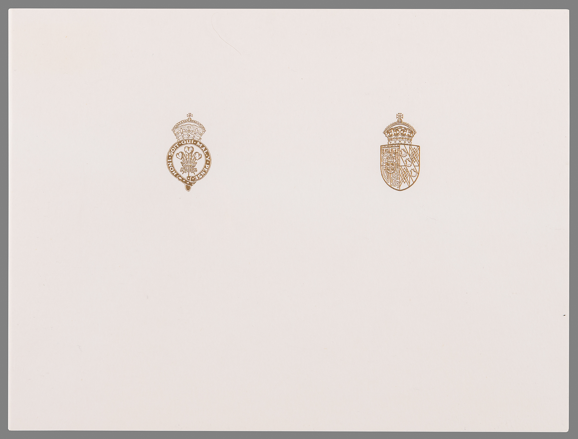 Fabulous 1990 Christmas card embossed on the front with the Prince of Wales’s feathers and Order of the Garter motto and the Spencer family arms, measuring 16 x 6 open, featuring an affixed color photo of the royal couple posing with their sons William and Harry, boldly signed and inscribed inside in ink, "Nicki, Lots of love from us all, Diana, x." In very fine condition.