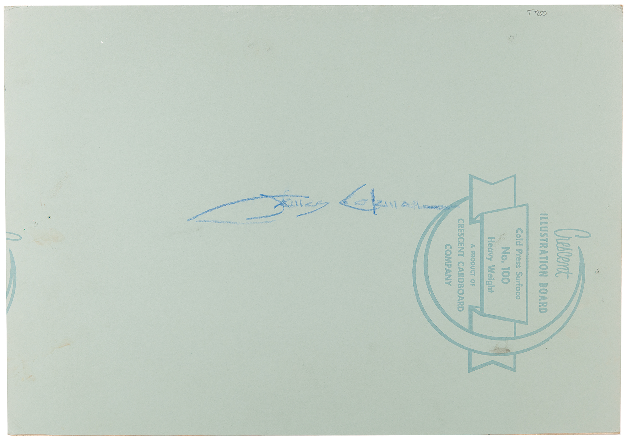(Walt Disney Studios, 1985) Original concept painting of color stylist James Coleman of The Horned King for The Black Cauldron, which depicts the evil skeletal king seated on his castle throne, a large chalice pictured to his left, and his red robe flowing between the throne’s great stone arms. Accomplished in gouache on 17 x 12 artist board, which is signed in black ballpoint by Coleman, who also signs on the reverse in blue artist pencil. Total image measures 15 x 10. In fine condition. A gorgeous and atmospheric rendering of the dark king of Prydain.