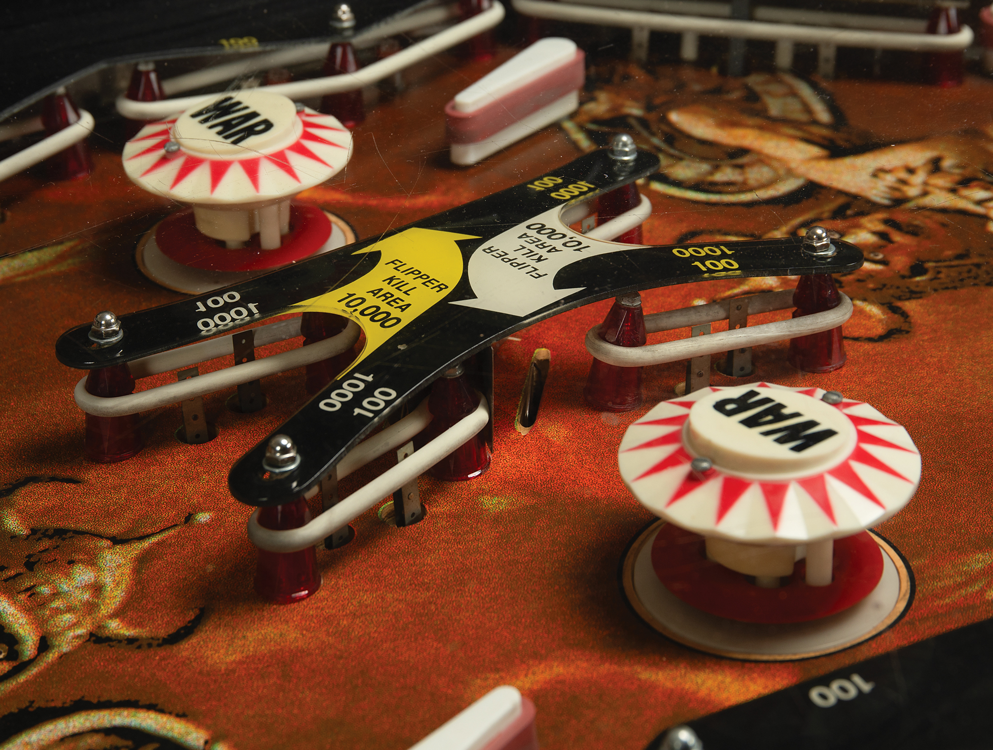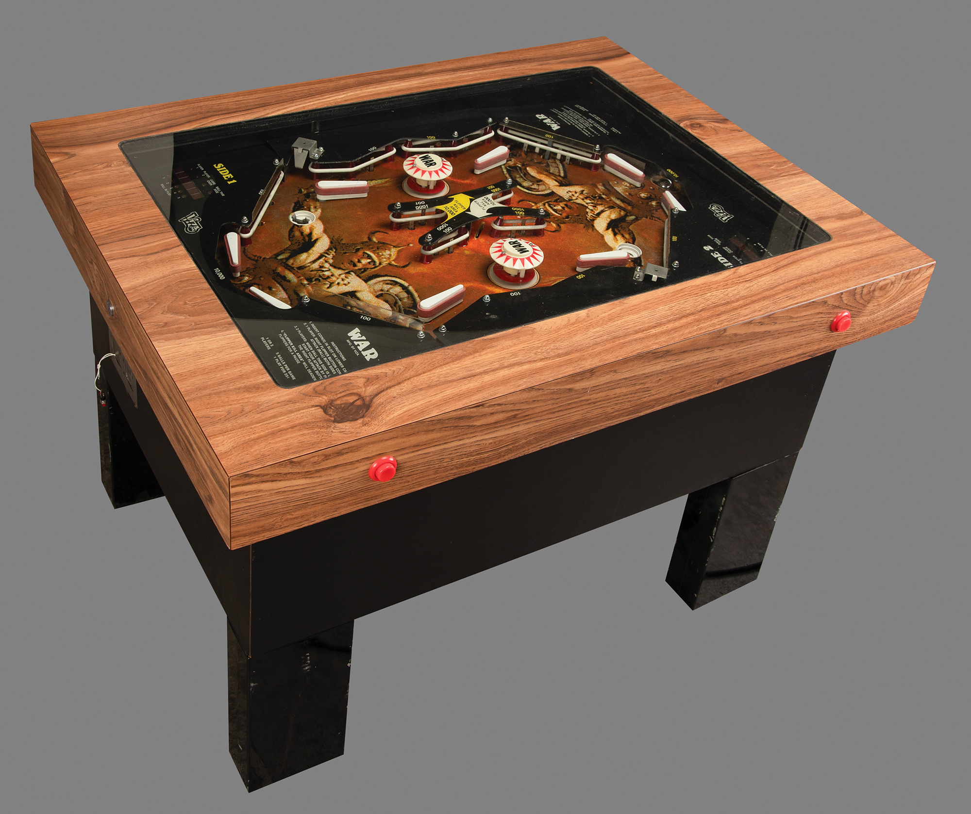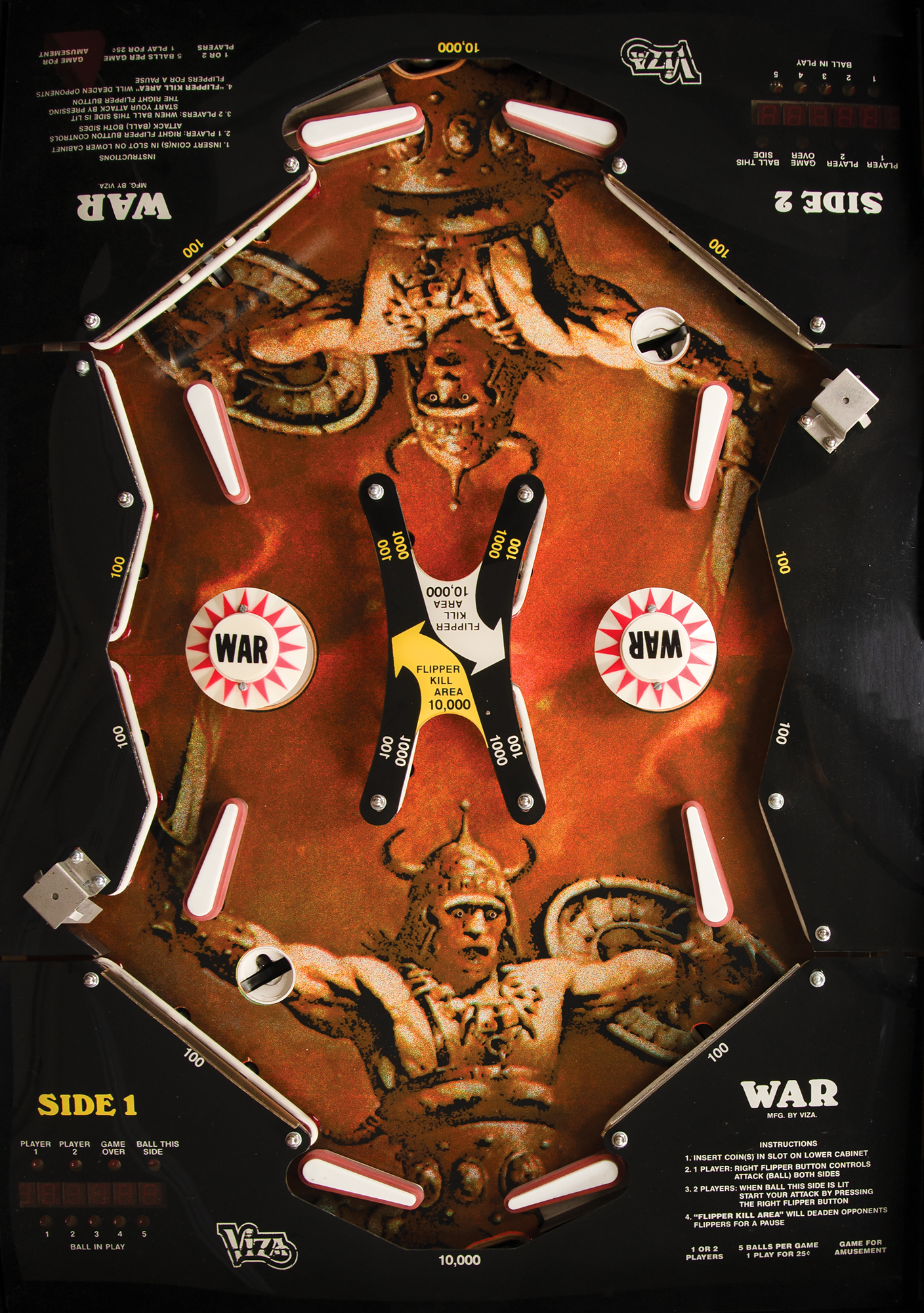 Viza?s rare head-to-head pinball machine, WAR, an unusual 2-player pinball experience with iconic Frank Frazetta playfield graphics