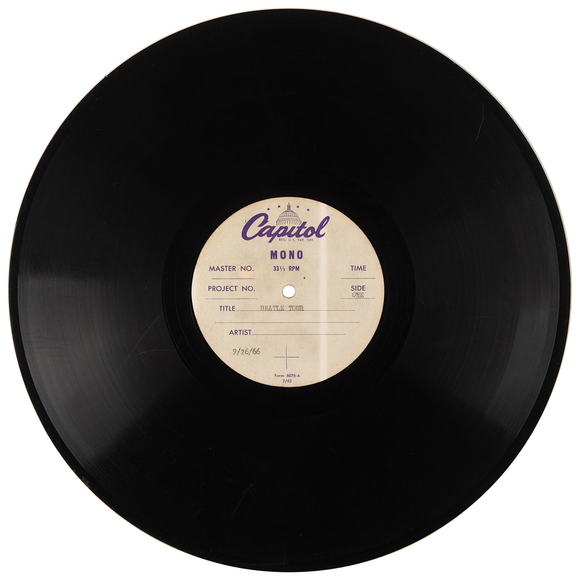 Beatles US Capitol Records Acetate for Beatle Tour (Unreleased, 1966)