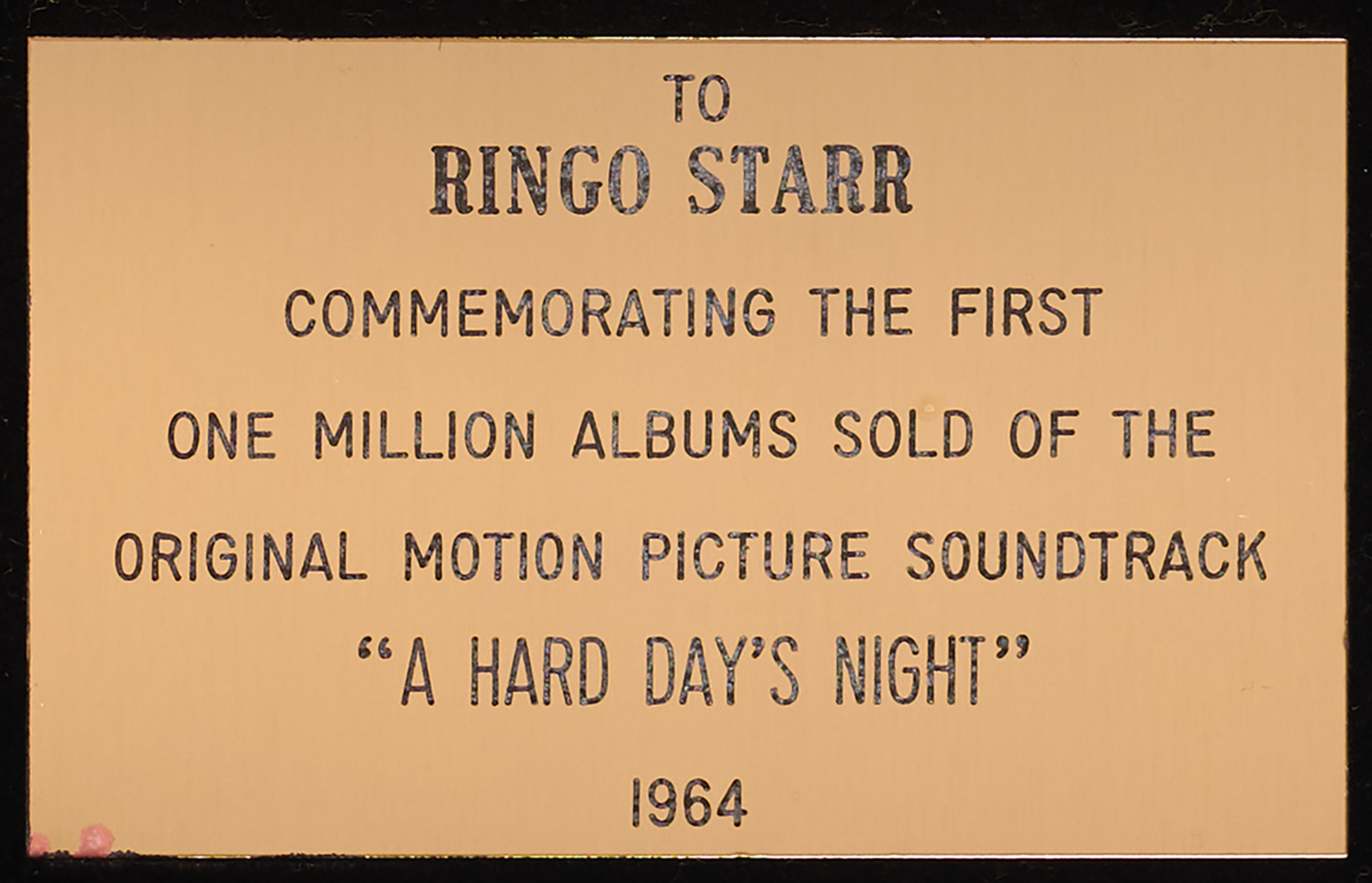 Ringo Starr's personal gold record award for the 1964 Beatles album 'A Hard Day's Night'