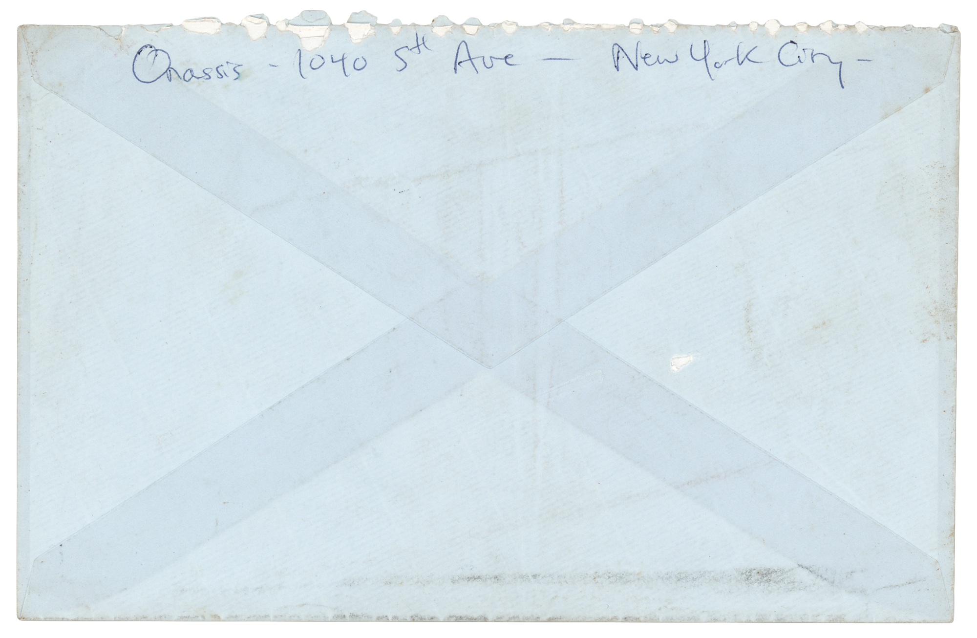 ALS signed “Jackie,” one page, 5.25 x 7.75, personal 1040 Fifth Avenue letterhead, April 28, 1969. Handwritten letter to “Joansie,” her sister-in-law, Joan Kennedy, the wife of Senator Ted Kennedy, in full: “Here is your beautiful picture. Your hair is so lovely & that is my favorite evening dress of all the ones I've seen you wear. I loved talking to you.” In very fine condition. Accompanied by the original mailing envelope, hand-addressed by Jackie, who adds on the reverse, “Onassis, 1040 5th Ave, New York City.”