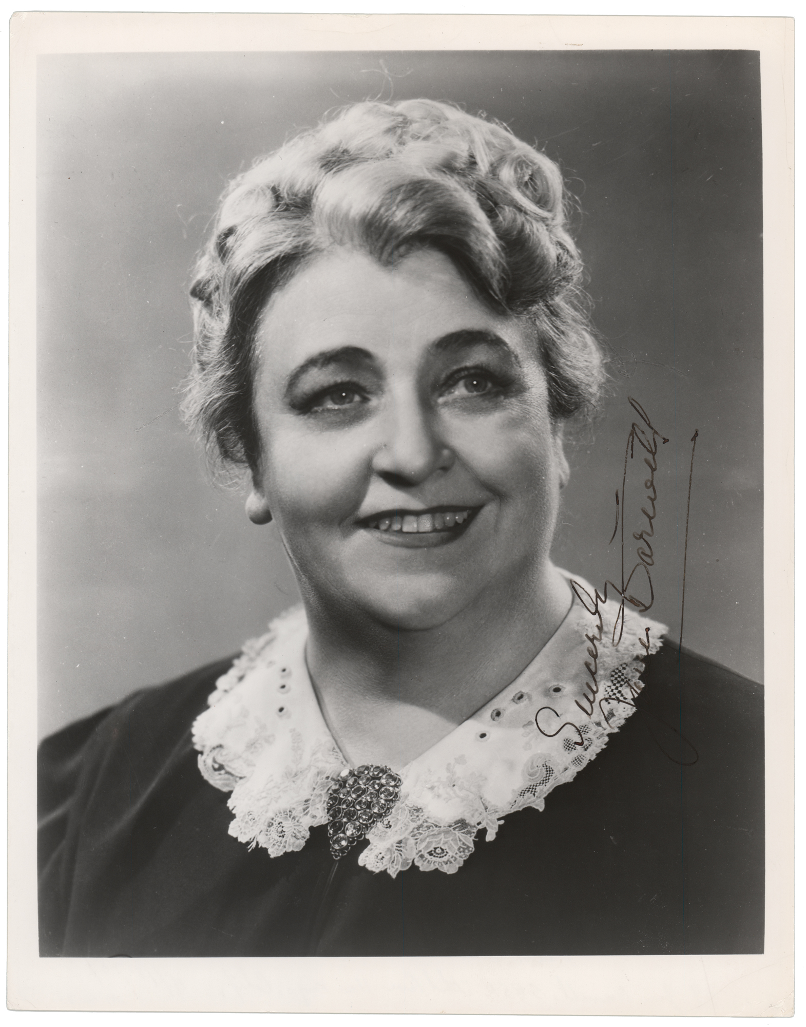 Vintage glossy 8 x 10 head-and-shoulders photo of the matronly actress, signed in fountain pen, "Sincerely, Jane Darwell." In fine condition.