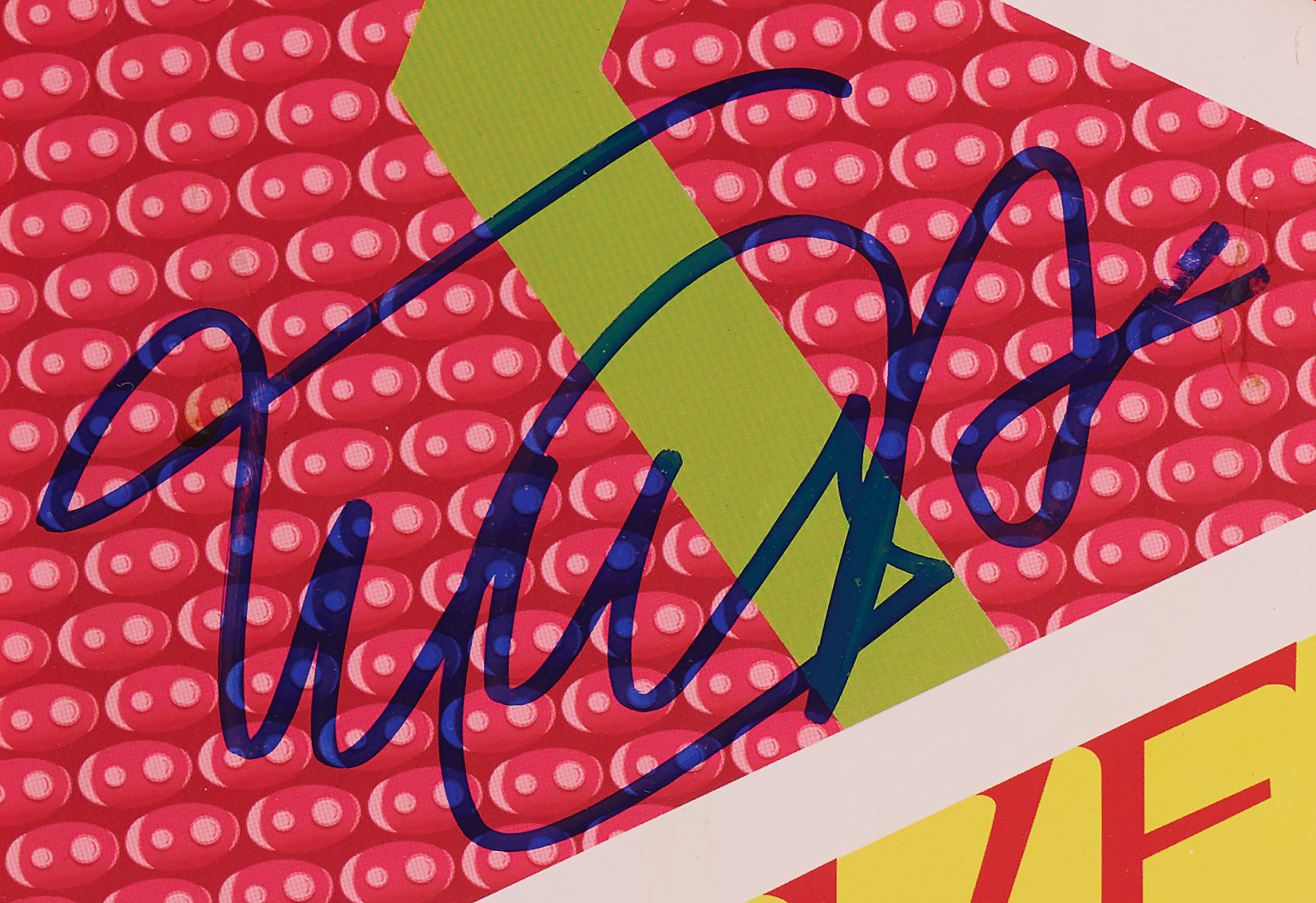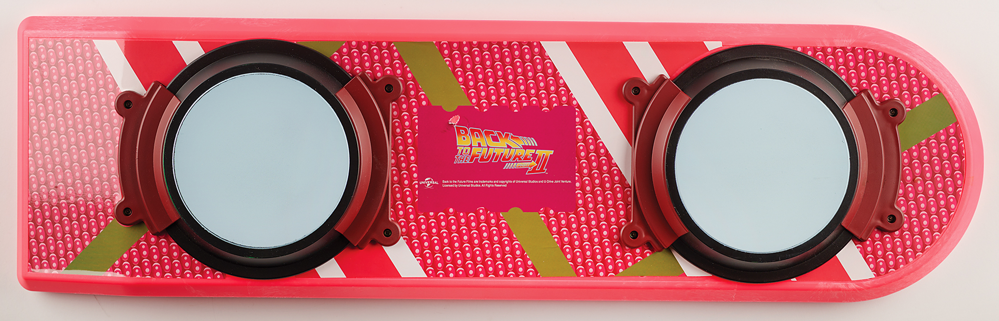 Replica 'Back to the Future Part II' hover board, measuring approximately 28˝ x 8˝, signed on the top in blue felt tip by Michael J. Fox. In fine condition, with a few minor surface dings and scuffs. Accompanied by the worn original box.