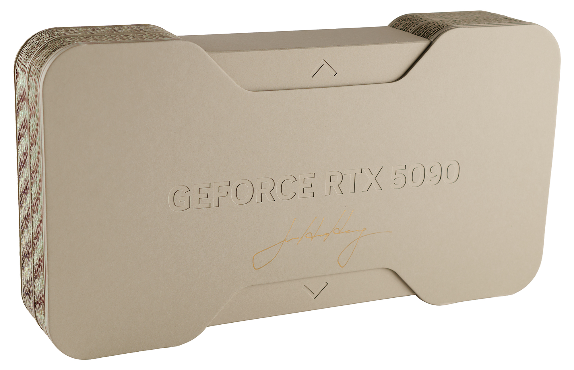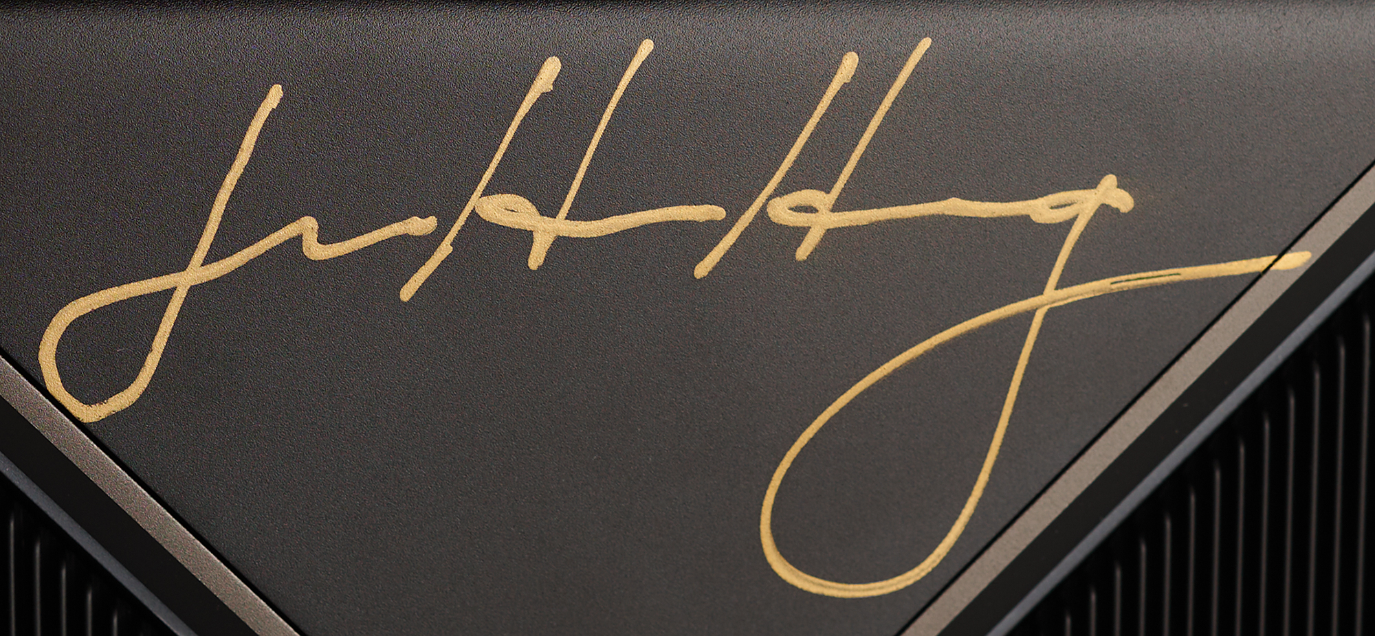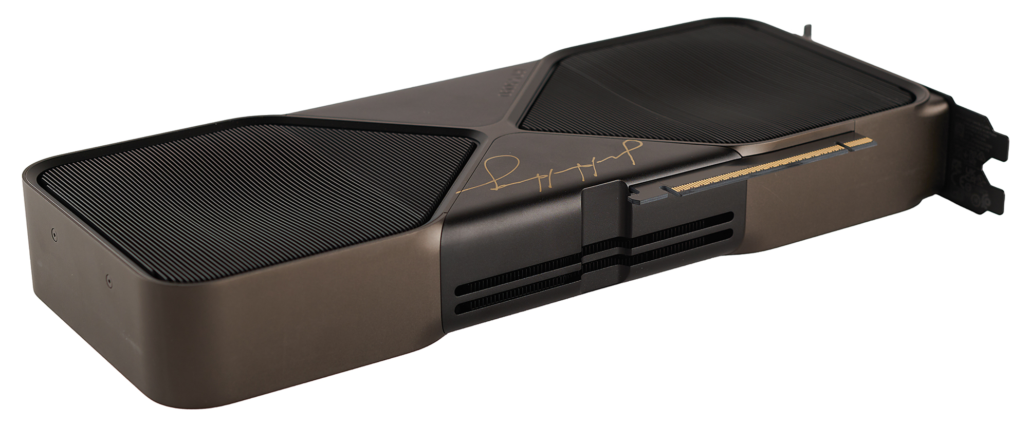 Extremely desirable NVIDIA GeForce RTX 5090 'Founders Edition' graphics card in its original packaging, signed on the package top in gold ink, "Jensen Huang," and on the metal housing of the card itself in gold ink, "Jensen Huang." Housed in its original shipping box, measuring 18˝ x 11.25˝ x 5.25˝. In very fine condition. Representing the latest in GPU technology, the GeForce RTX 5090 carries an MSRP of $2000 and is sold out virtually everywhere.