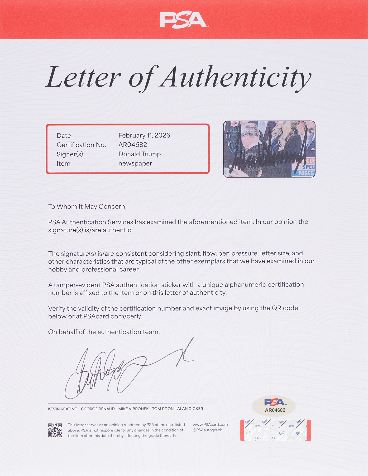 This item is Pre-Certified by PSA/DNA