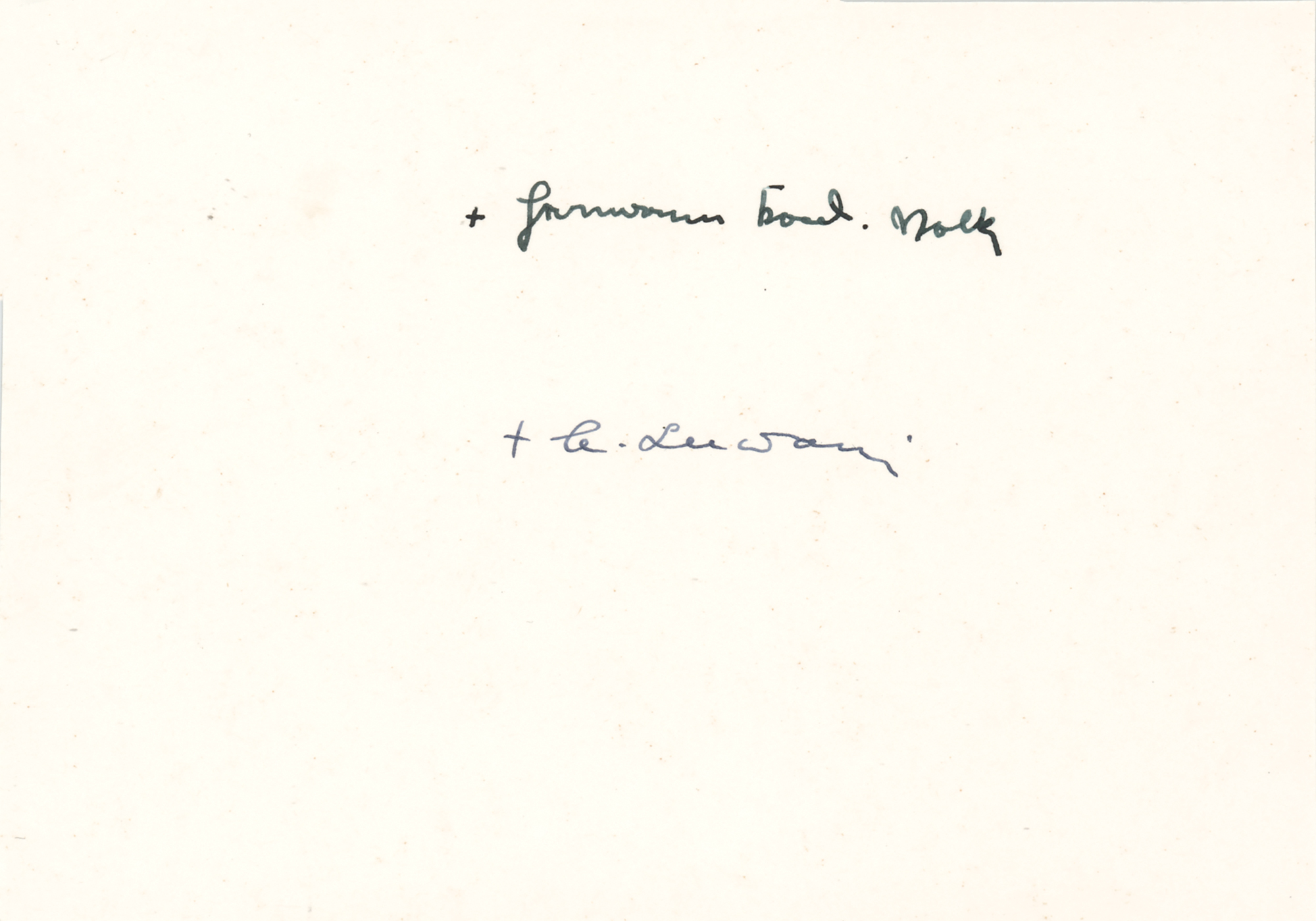 Born Albino Luciani (1912–1978), he was elected Pope on August 26, 1978, and suddenly died of a heart attack just 33 days later. Vintage ballpoint signature, "A. Luciani,” on an off-white 5.75 x 4 card, which is signed above by an unknown member of the clergy. In very fine condition.