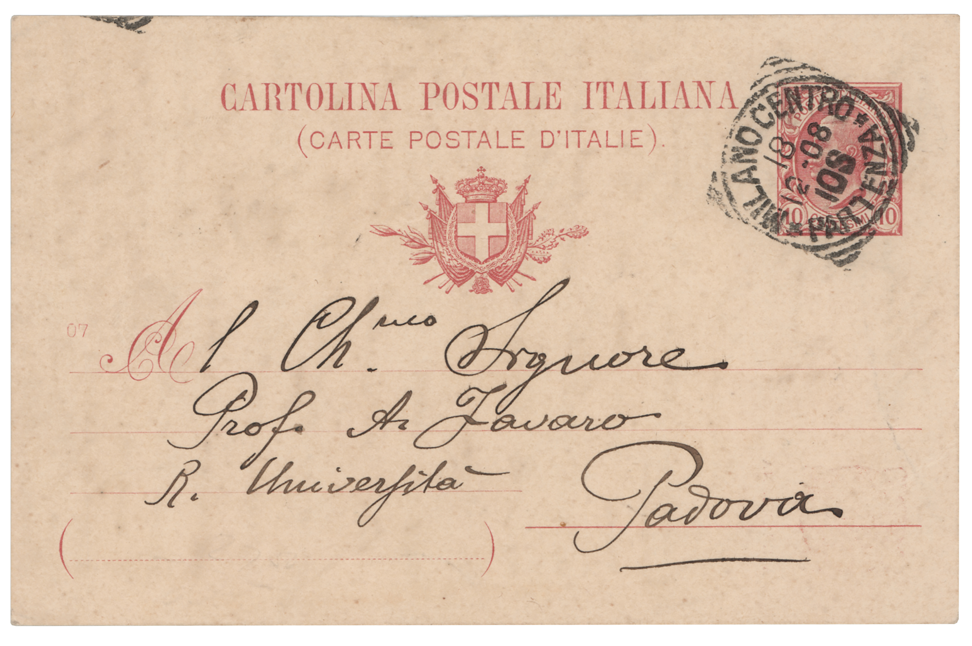 Pope, born Ambrogio Damiano Achille Ratti (1857–1939), who reigned from 1922 until his death and issued encyclicals condemning communism, fascism, and racism. ALS in Italian, signed “A. Ratti,” one page, 3.5 x 5.5, Ambrosiana postal card, December 19, 1908. Addressed from Milan, an untranslated handwritten letter from Ratti as Chief of the Ambrosian Library, discussing a recently received volume, offering a measured but critical assessment—remarking on its uneven development, the author’s haste, and certain flaws in execution—while noting that he has not yet had sufficient opportunity to fully evaluate its usefulness. In fine condition.