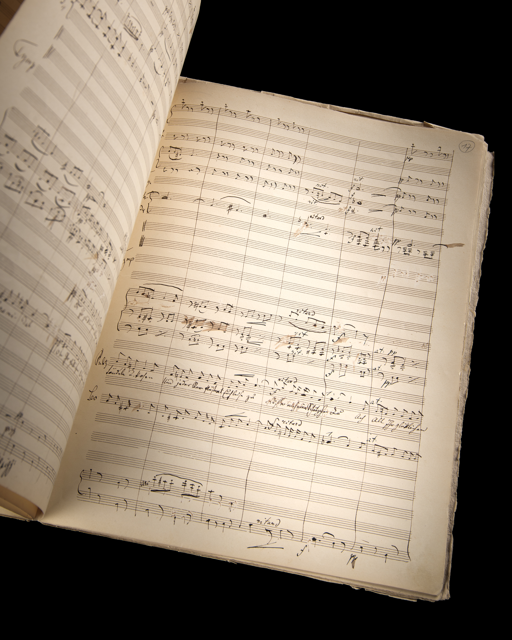 Eminent Viennese composer (1825–1899) known as the 'Waltz King,' who is remembered for such classics as 'The Beautiful Blue Danube' and the 'Emperor Waltz,' and for the operetta staple, 'Die Fledermaus.' Unsigned handwritten musical manuscript by Johan Strauss II, totaling 32 pages, 10.5 x 13.75 no date but circa 1876. Strauss drafts the duet "Zum ersten Mal mit dir allein" from Act I of Prinz Methusalem in full score, on up to twenty-four staves per page, with many autograph corrections, revisions, alterations, and deletions, with some notes scratched out by Strauss; pages 19–27, and page 32, are in another hand, though annotated by Strauss; page 28 has been left blank and struck through in indelible pencil. Bound in old paper wrappers, artistically titled on the front and annotated in pencil by a collector. In fine condition.