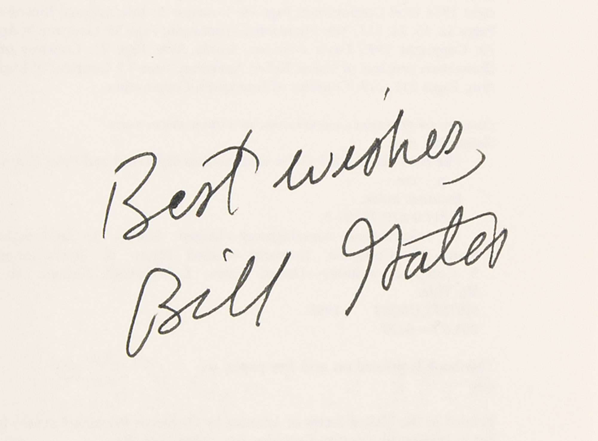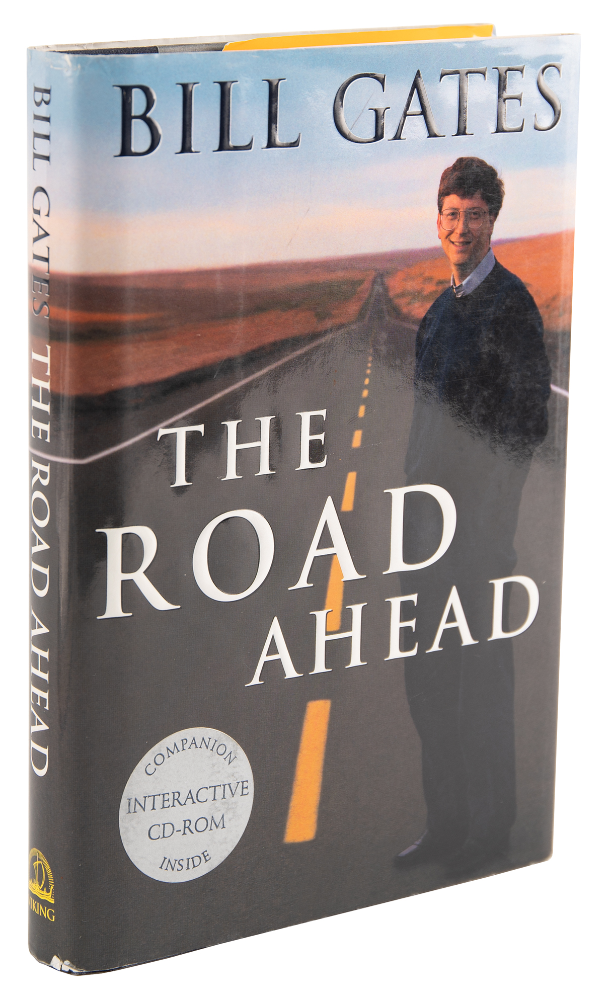 Signed book: The Road Ahead. First edition. NY: Viking Press, 1995. Hardcover with dust jacket, 6.5 x 9.25, 286 pages. Signed on the title page in black ink, "Best wishes, Bill Gates." Includes a companion CD-ROM. In very fine condition.