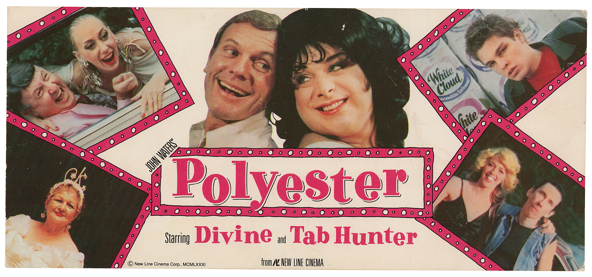 Unusual 'Odorama' scratch-and-sniff card from the 1981 John Waters comedy Polyester, 11 x 5, signed in black felt tip, "Love, Divine." In fine condition. The 'scentsational' film used these 'Odorama' cards as a comedic gimmick (they are mostly foul odors), whereby viewers could smell what they see on screen using the scratch-and-sniff cards at designated intervals.