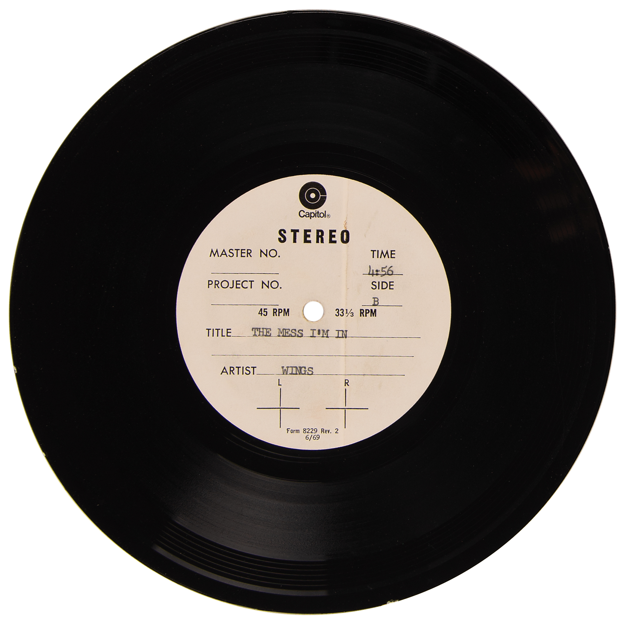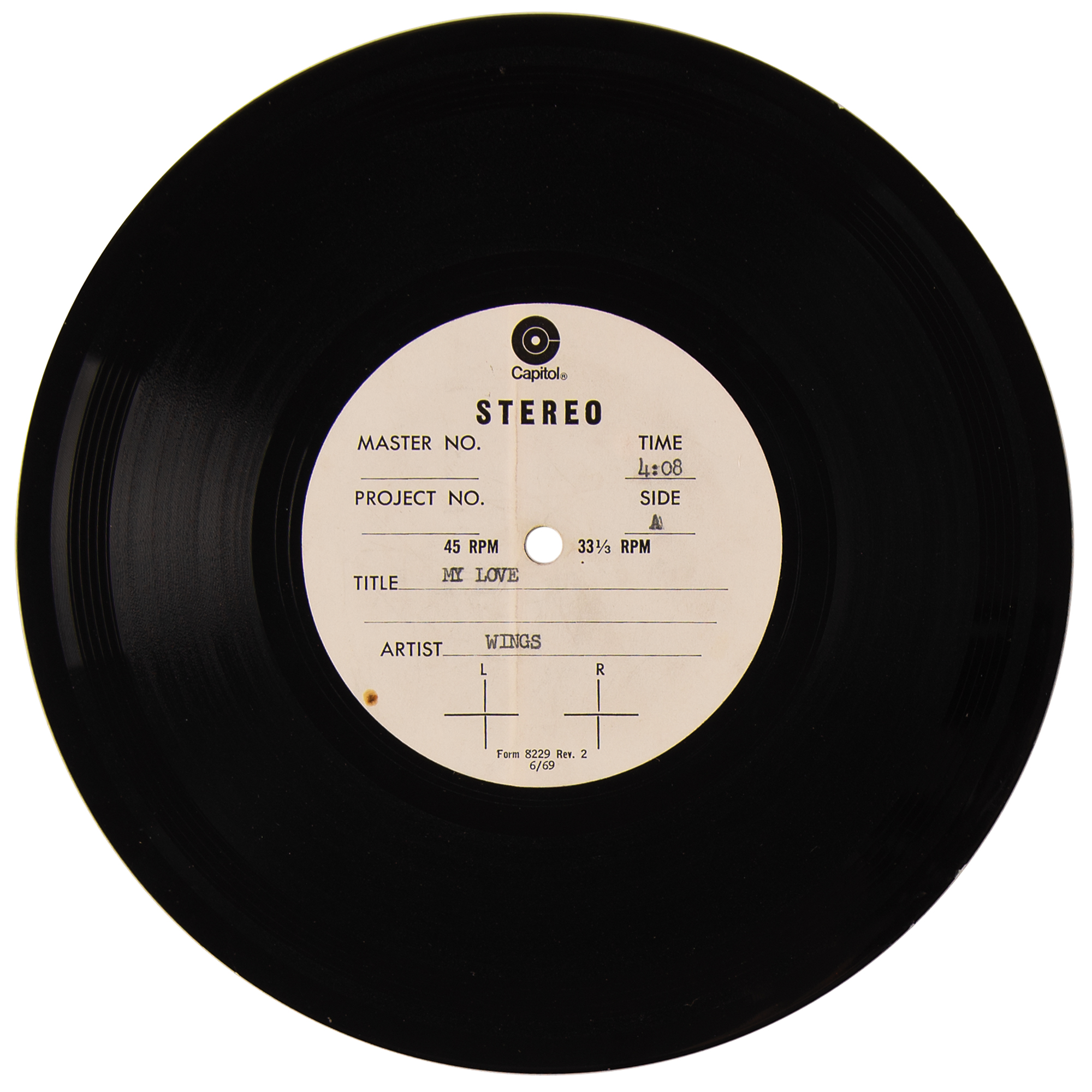 Beatles: Paul McCartney & Wings US Stereo Capitol Records Acetate for “My Love / The Mess I'm In" (1973)