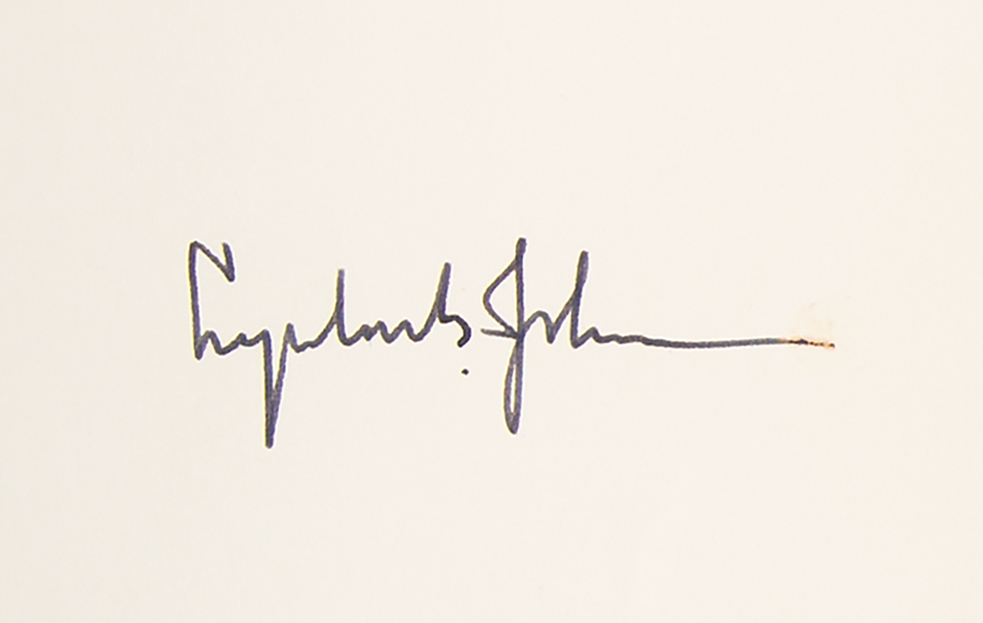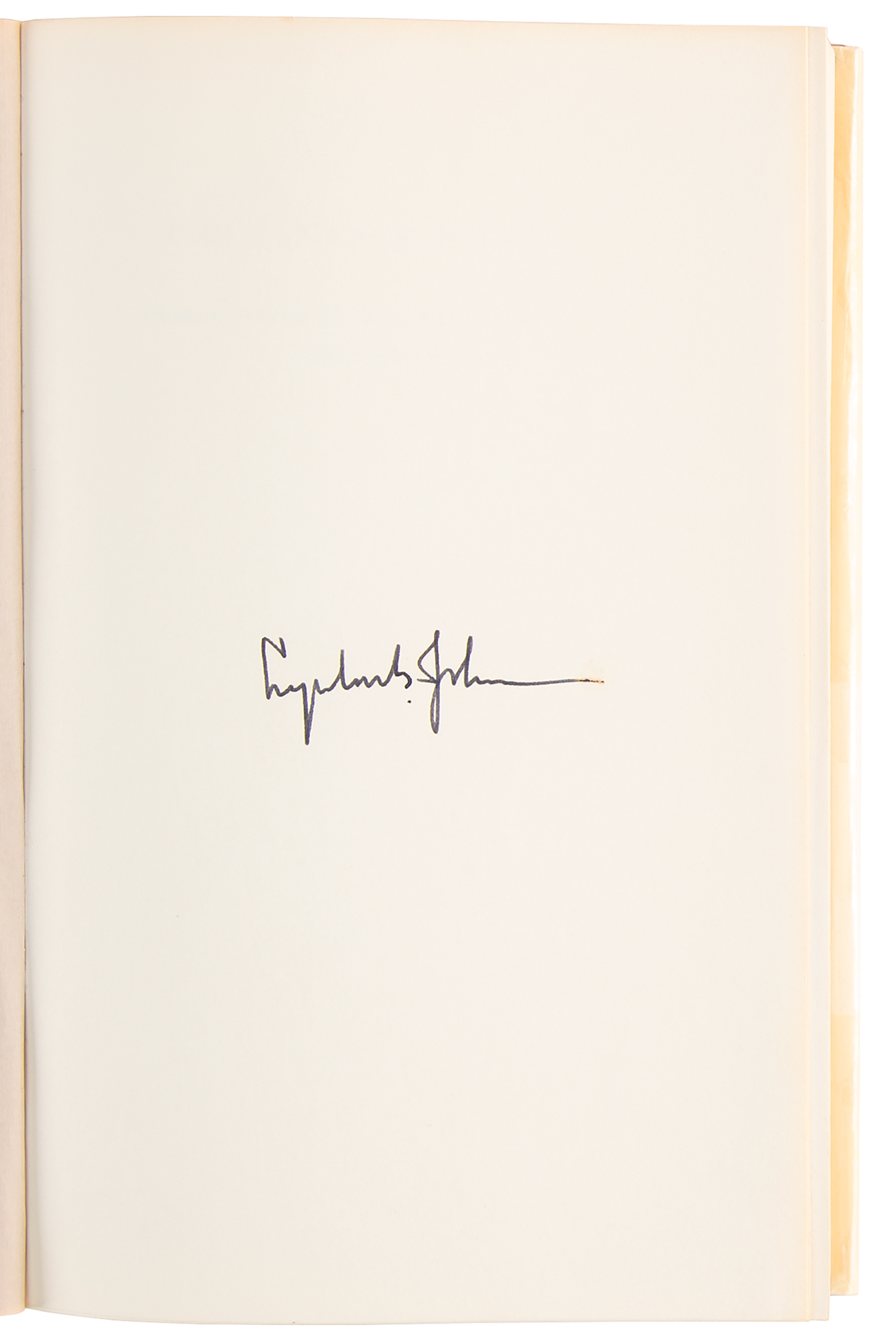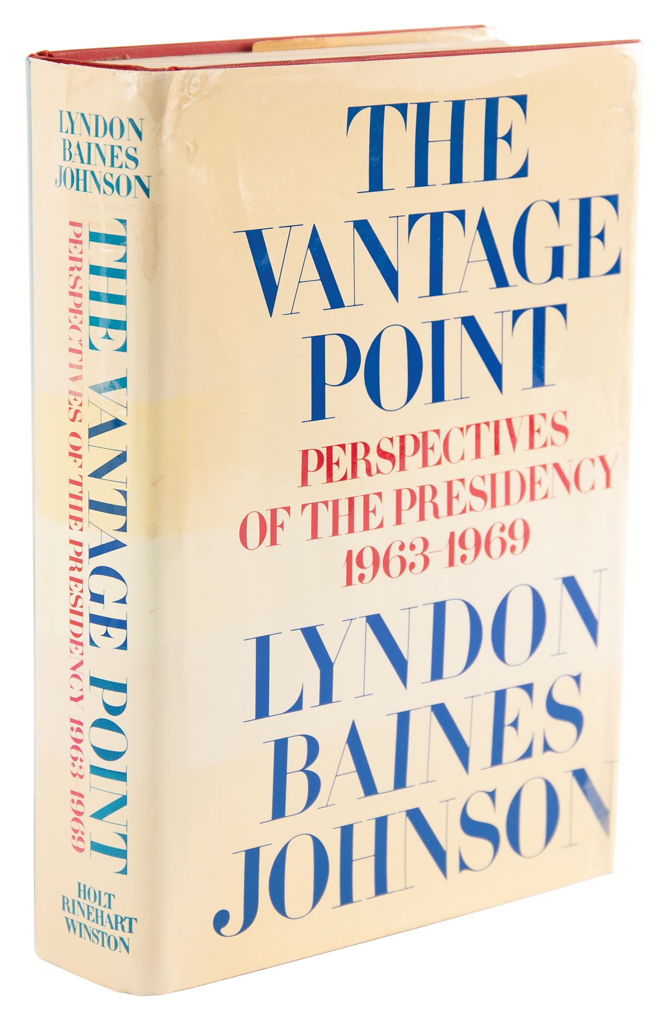 Signed book: The Vantage Point: Perspectives of the Presidency, 1963-1969. First edition. NY: Holt, Rinehart and Winston, 1971. Hardcover, 6.25 x 9.5, 636 pages. Signed on the first free end page in fountain pen, "Lyndon B. Johnson." Includes its original ‘Autographed Copy’ belly band. In fine condition, with light toning to the dust jacket.