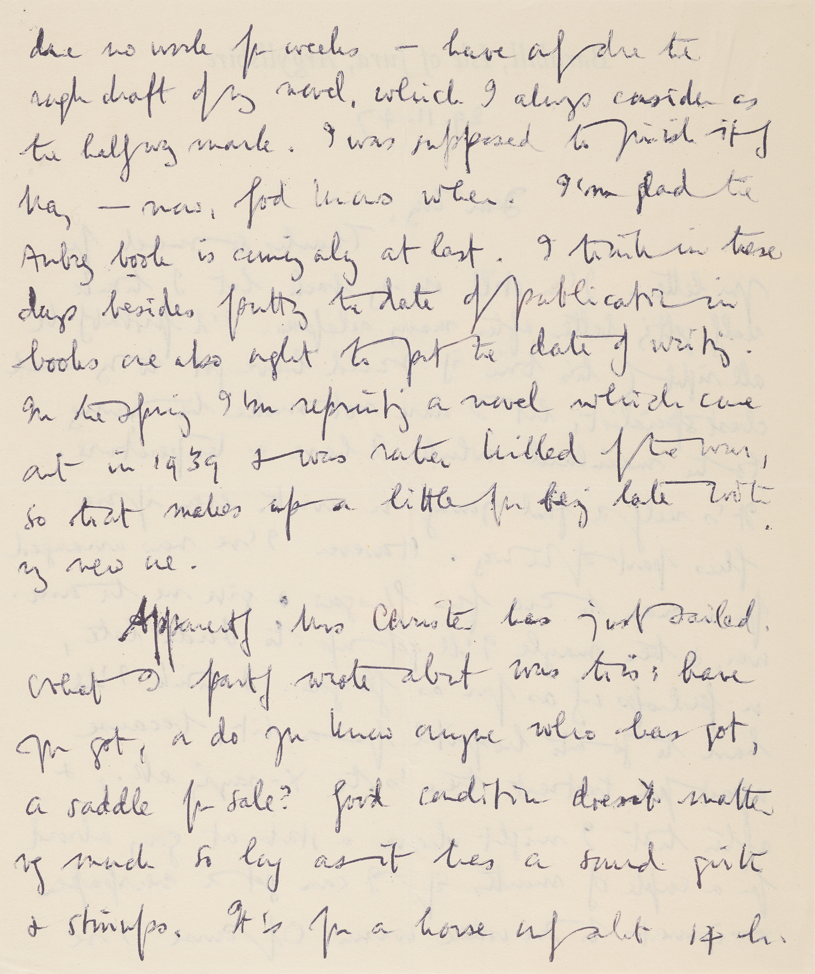 Orwell, at work on his dystopian classic Nineteen Eighty-Four in November 1947, writes he has “only done the rough draft of my novel, which I always consider as the half-way mark. I was supposed to finish it by May – now, God knows when”